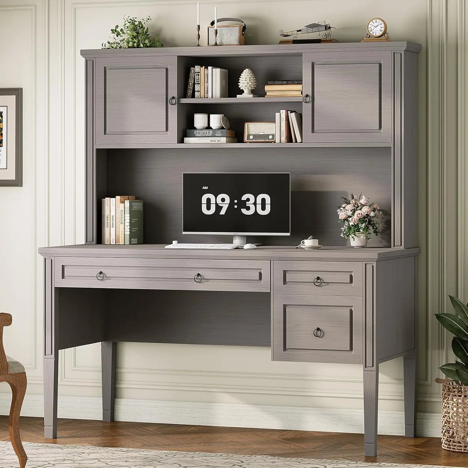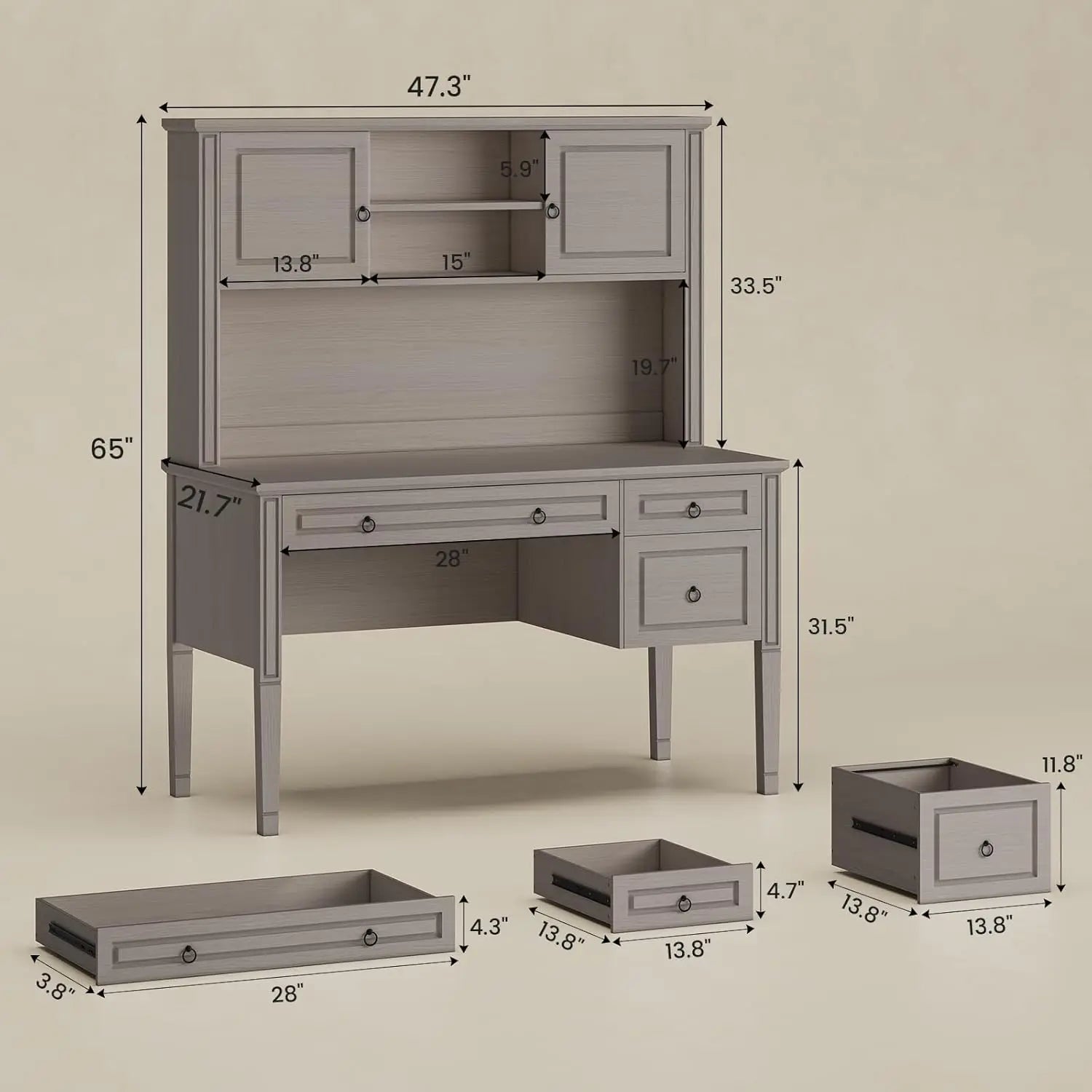 Farmhouse Executive Desk, 47.3" Office Desk with Hutch & 3 Drawers, Wood Home Office Desk with File Drawer, Storage Cabinet and