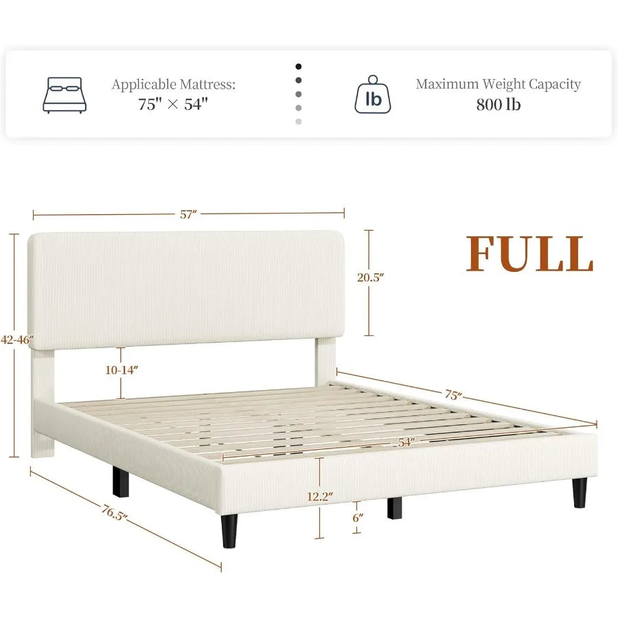 Full Size Bed Frame with Adjustable Headboard Chenille Fabric Upholstered Headboard Platform Bed Full Bed Frame No Box Spring N