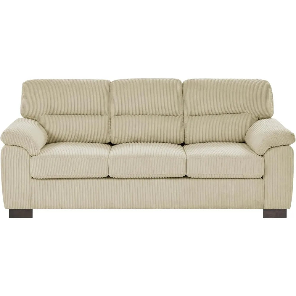 81" Modern Sectional Sofa Couch for Living Room, Upholstered Corduroy 3 Seater Sofa for Small Space Apartment, Deep Seat, Cream