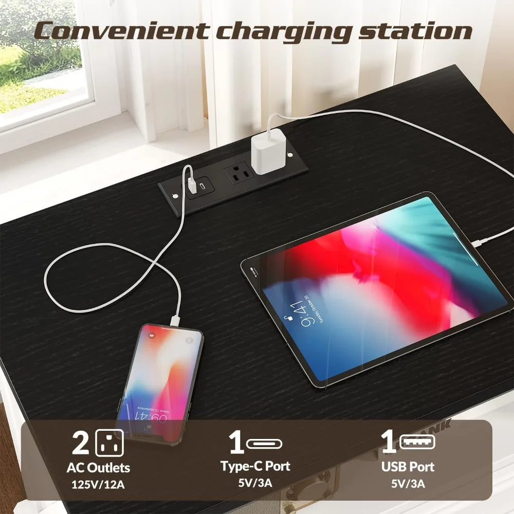 Farmhouse Nightstands with Charging Station, Nightstand with Large Drawers, Rustic Wood End Table for Bedroom