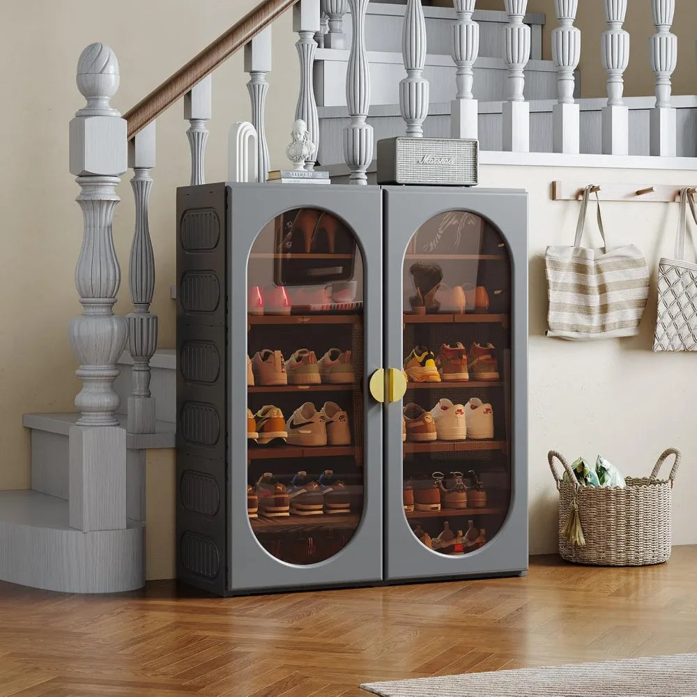 Shoe Organizer Cabinet Shoe Storage Cabinet Hallway with Doors 3 Tier Shoe Rack Storage Cupboard