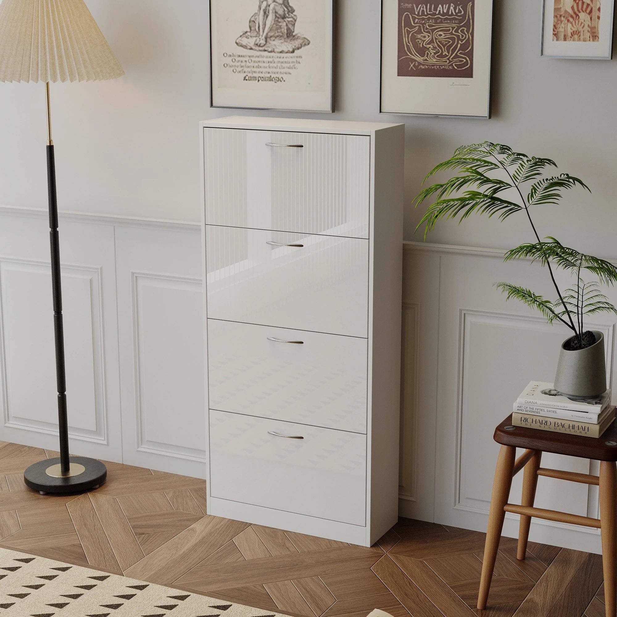 Shoe Cabinet with 4 Flip Drawers, Narrow Shoe Storage Cabinet, Freestanding Shoe Cabinet Organizer, Hidden Shoe Rack Cabinet for