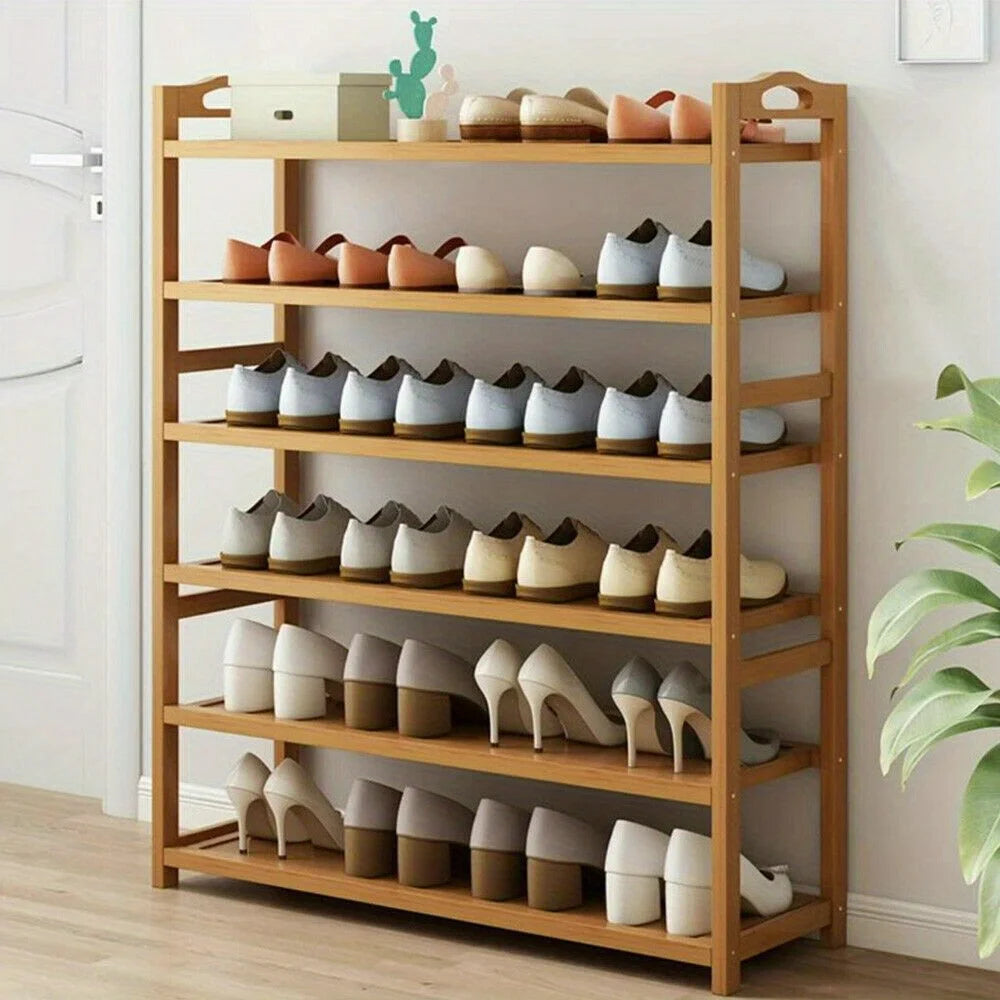 6 - Layers Bamboo and Natural Wood Shoe Rack for Entryway Home Storage