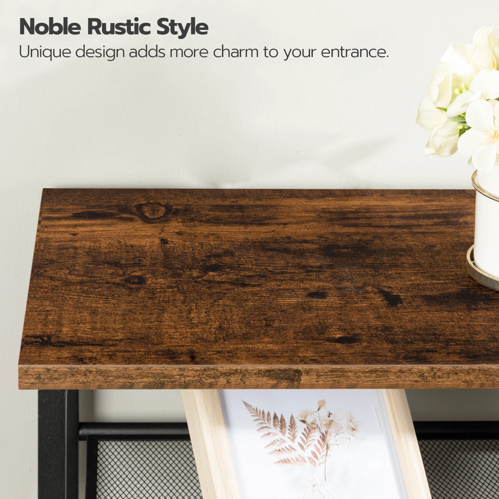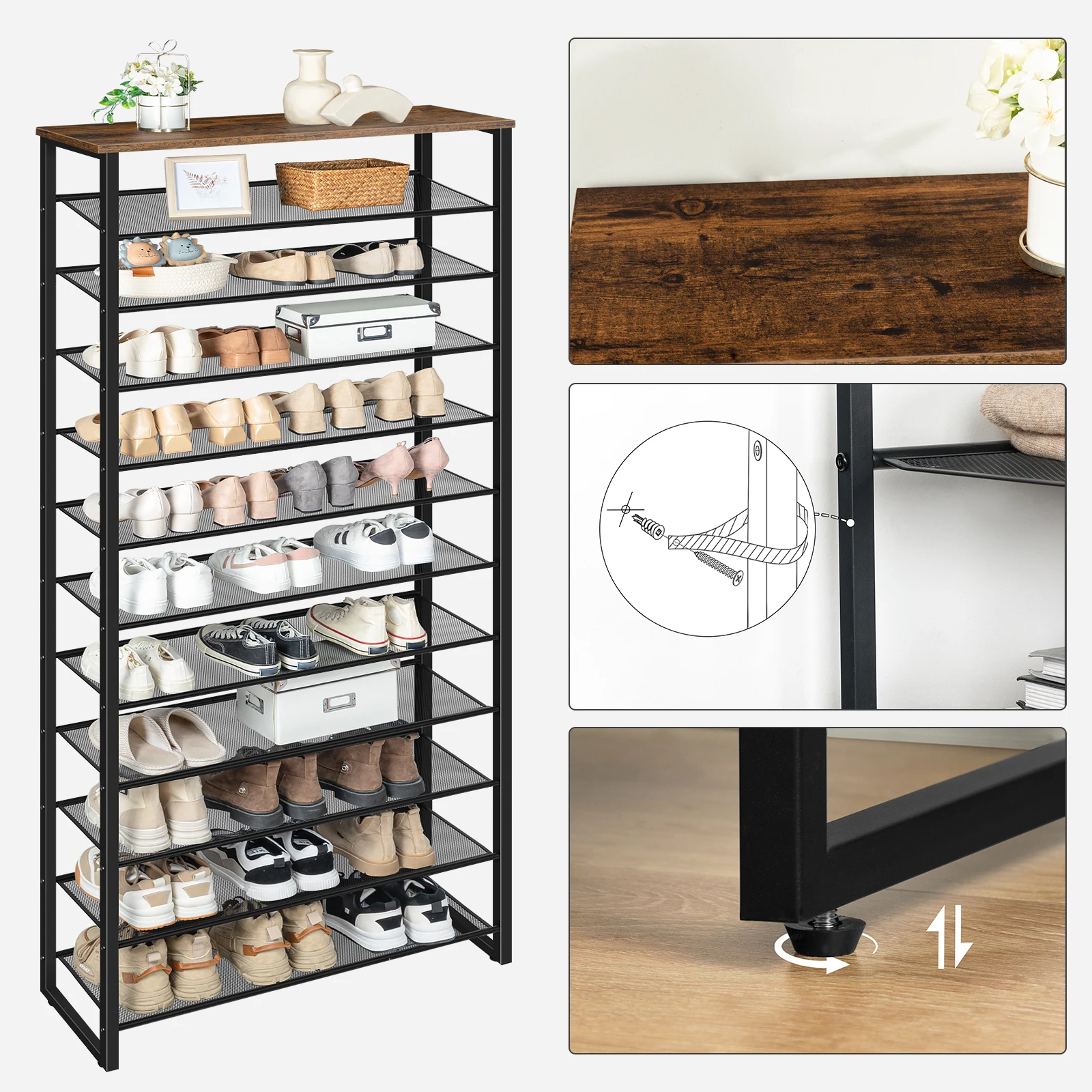 Wow Your Friends: This shoe rack is designed to be both functional and beautiful. Made of elegant particleboard in a rustic brown color paired with a black metal frame, the shoe rack is a fine piece of furniture that greatly express your taste