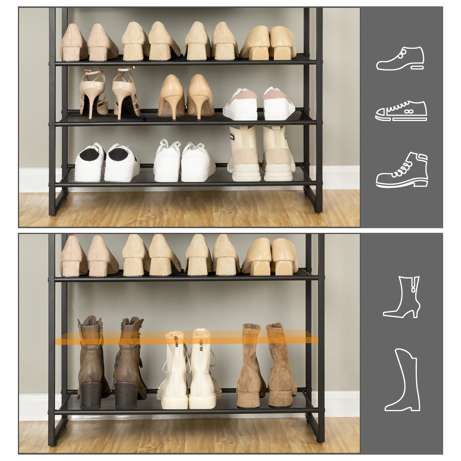 Flat Shoes or Boots: The large-capacity shoe rack with removable shelves can easily store sneakers, boots and slippers. Just remove one of the shelves to meet your needs. It's perfect for your heels and winter boots and there is no more messy shoes
