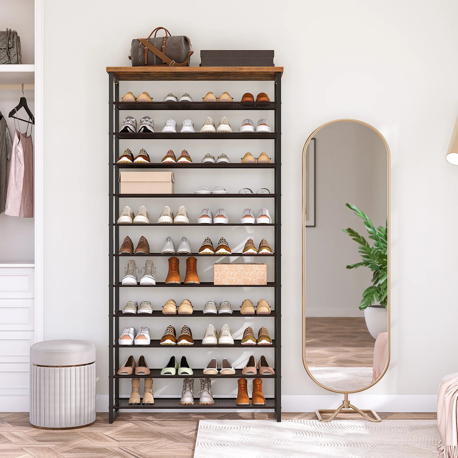 Oversized Shoe Rack: Size 29.5"W x 11.2"D x 75.2"H. This 12-tier shoe rack is a perfect space saver which is wide enough to hold up to 45 pairs of shoes. It makes a huge difference and renews the messy entryway