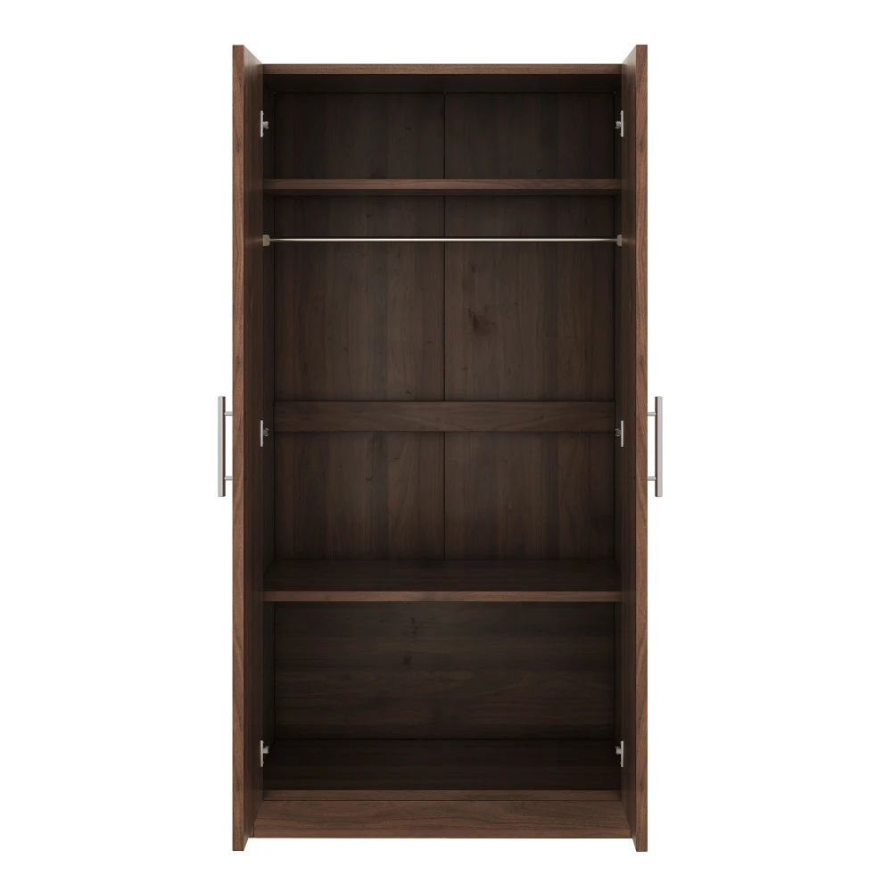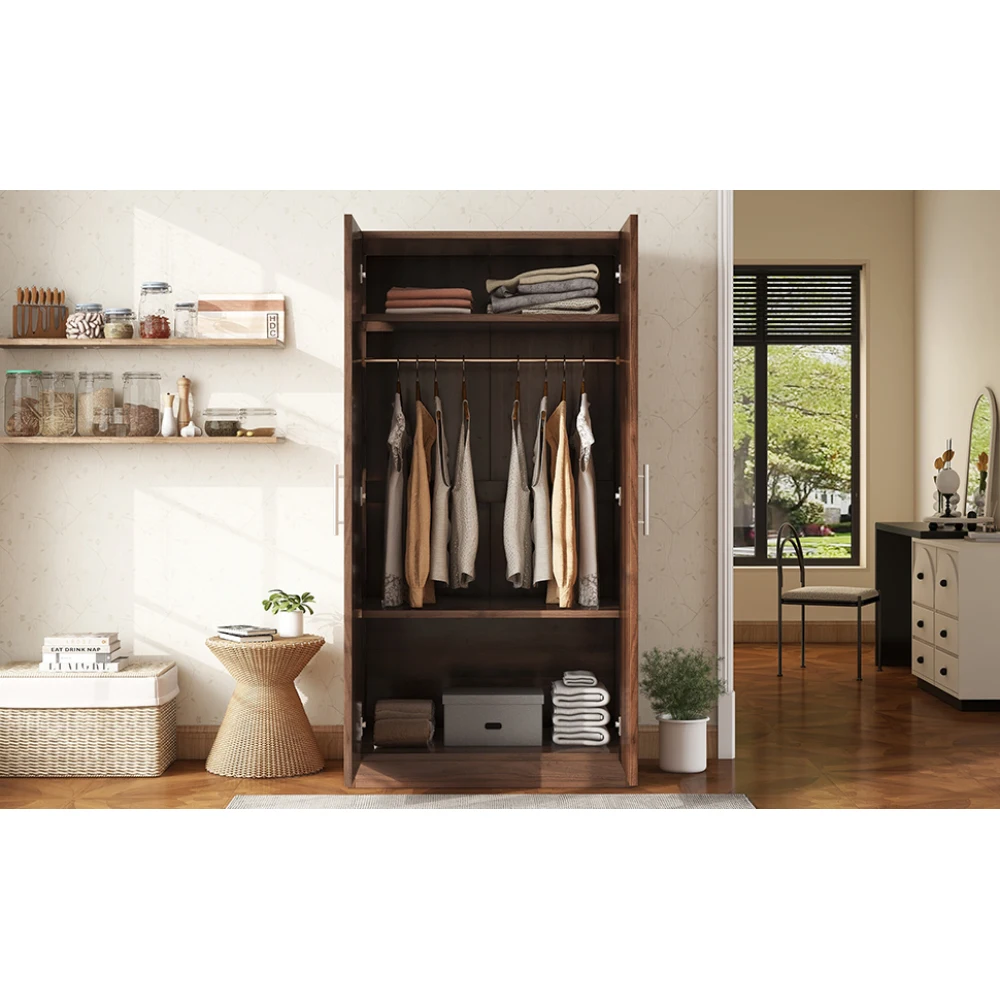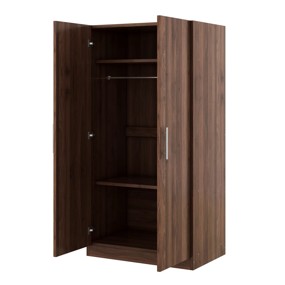2-Door Wooden Wardrobe Armoire with 3 Storage Shelves, Brown