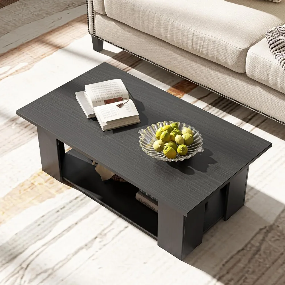 - 2-Tier Design to Enlarge Storage: This modern coffee table comes with a tabletop and an open bottom shelf that provide you with sufficient space to classify and display multiple items, such as cups, vases, magazines and other ornaments. With the help of our coffee table, you will no longer be bothered about messy room. Overall Dimension: 41” x 20.5” x 12.5” (L x W x H)