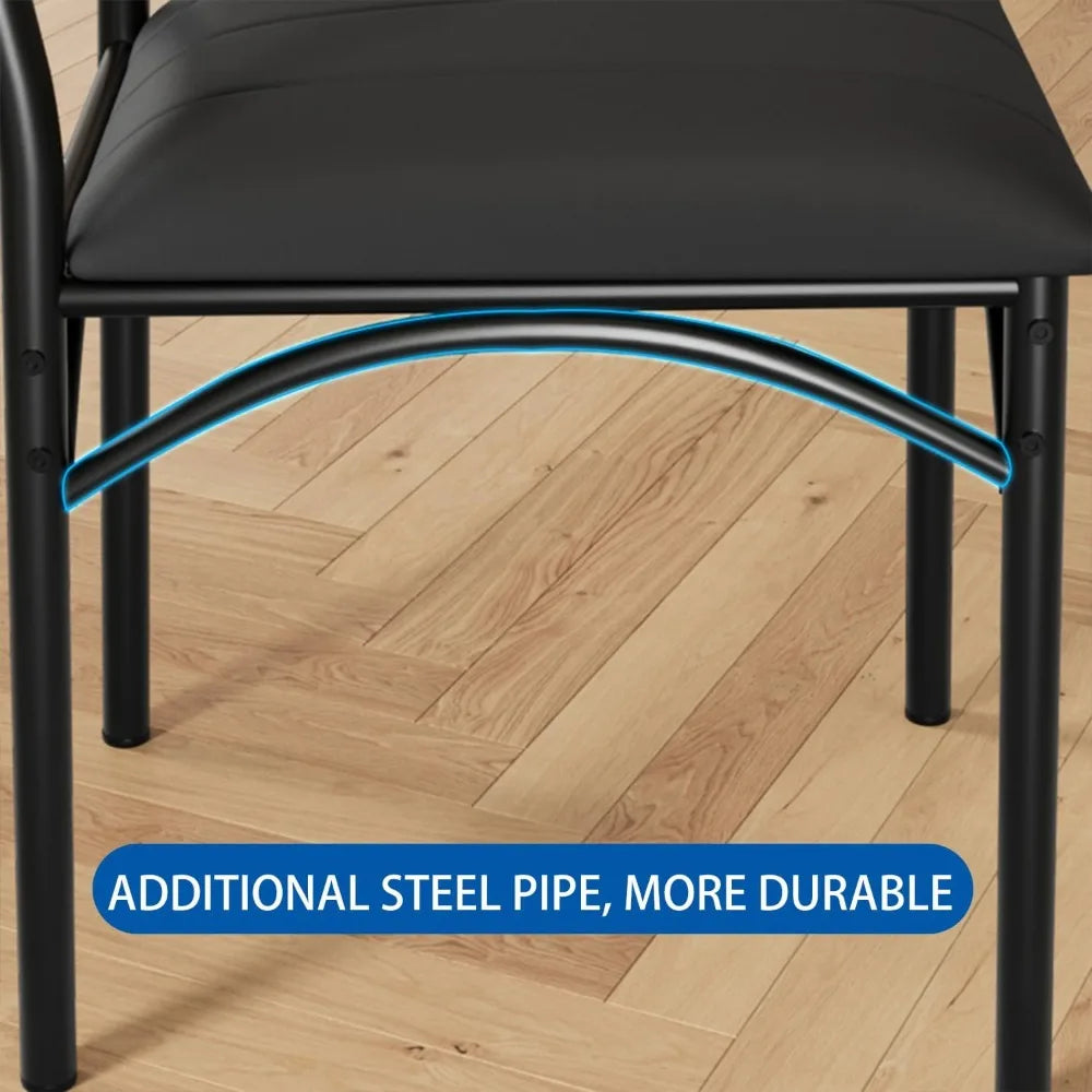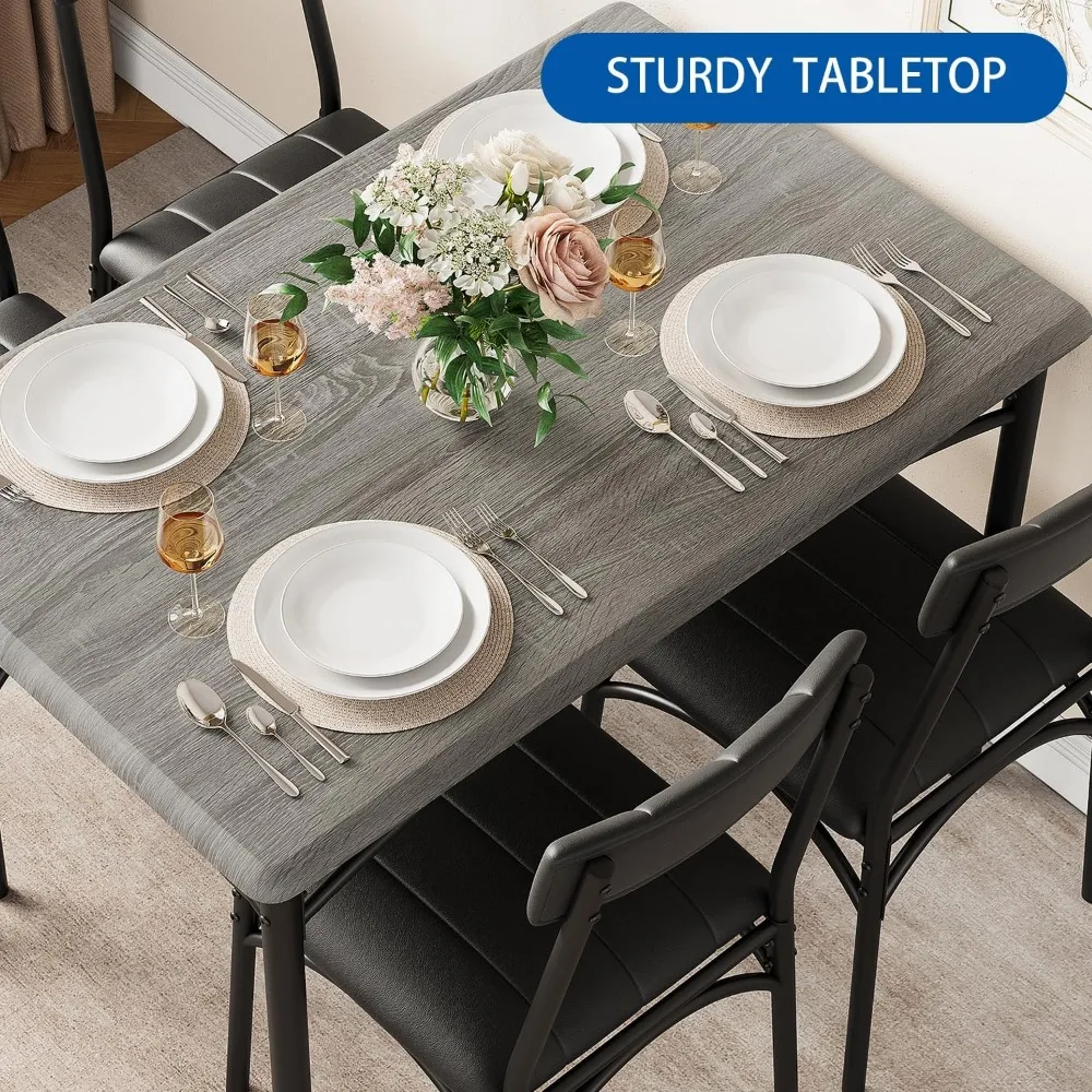 This dining table set is designed for 4 people and is perfect for small spaces like apartments and studios. It includes a rectangular wooden dining table and a set of cozy upholstered chairs and a bench. The furniture is made from high-quality MDF and steel, providing a sturdy and durable construction. The larger-diameter metal pipes offer enhanced stability, and the thickly padded cushions on the bench and chairs ensure comfort during long dining sessions. The dining table set boasts a premium MDF tabletop, which significantly improves its durability and supports a load capacity of up to 400 lbs for both the chairs and the bench. This makes it suitable for family gatherings and entertaining guests. The space-saving design allows the chairs and bench to be neatly tucked under the table when not in use, keeping your living area organized and tidy. The dimensions of the table are 43.37 inches long, 27.57 inches wide, and 30.07 inches high, while the chairs measure 18.87 inches long, 17.07 inches wide, and 33.87 inches high, and the bench is 35.47 inches long, 13.77 inches wide, and 18.77 inches high. Maintenance is easy with the waterproof and anti-corrosive coating, which allows for quick cleaning of spills and dust without damaging the surface. Assembly is straightforward, with all tools and hardware included, and clear instructions provided, allowing you to set up the dining table set in under 40 minutes. This rustic-style dining set offers a hassle-free and comfortable dining experience.