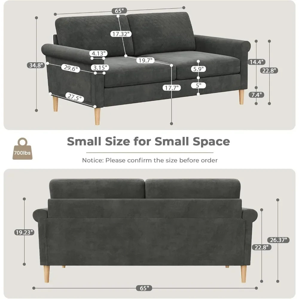Versatile and Space-Saving: 2-Seat Loveseat (65" W x 29.5" D x 34.8" H) embraces mid-century modern design. Ideal for small apartments and cozy corners, its compact size fits seamlessly into any area while maximizing seating. Enhance your space with this functional and stylish loveseat, designed to make a statement and optimize your living area.