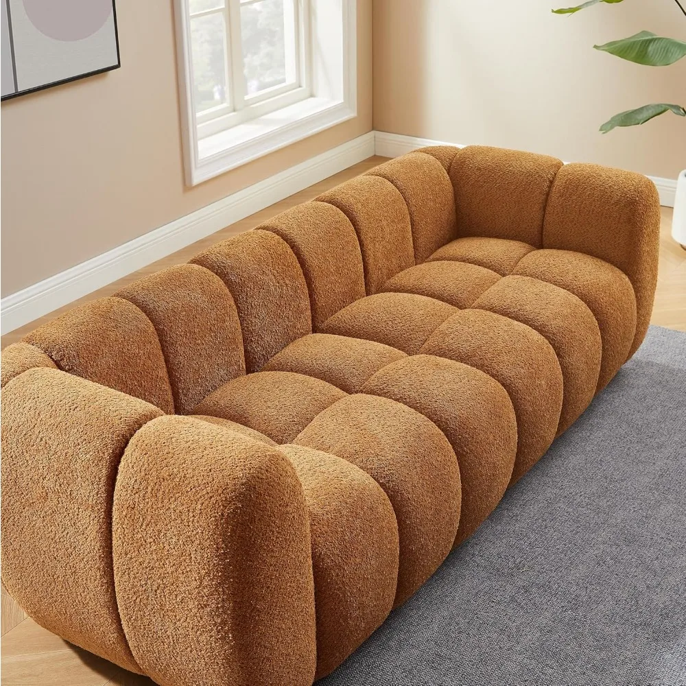 - Boucle Fabric: Crafted from high-quality Boucle fabric, this sofa couch offers a breathable, durable, and wrinkle-resistant solution. The slight stretch and plush texture create a cloud-like feel, ensuring unparalleled comfort