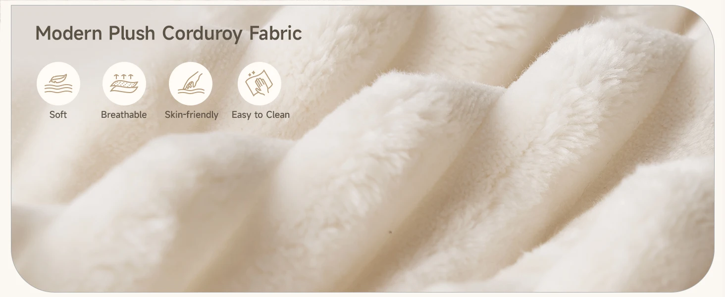 Breathable corduroy upholstery combines ultra-soft feel with exceptional durability. Hypoallergenic material ensures year-round comfort for sensitive skin.