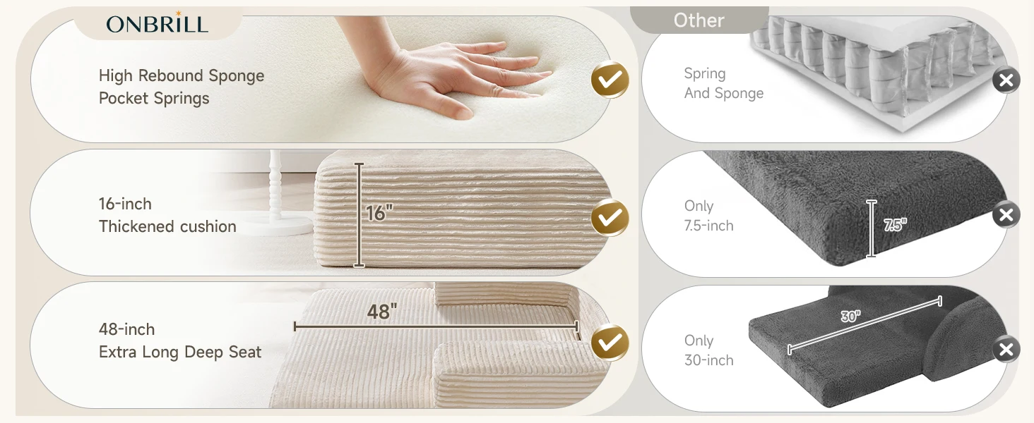 High-density rebound foam core (no springs/wood) delivers orthopedic-grade comfort. Supports up to 1,000 lbs with zero sagging - ideal for daily use.