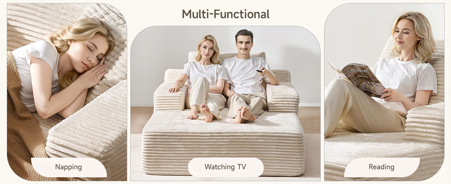 Chaise Lounge Chair, 65" Oversized Corduroy Sofa Bed, Cloud Sleeper Chairs With Wide Armrests, Couches for Living Room