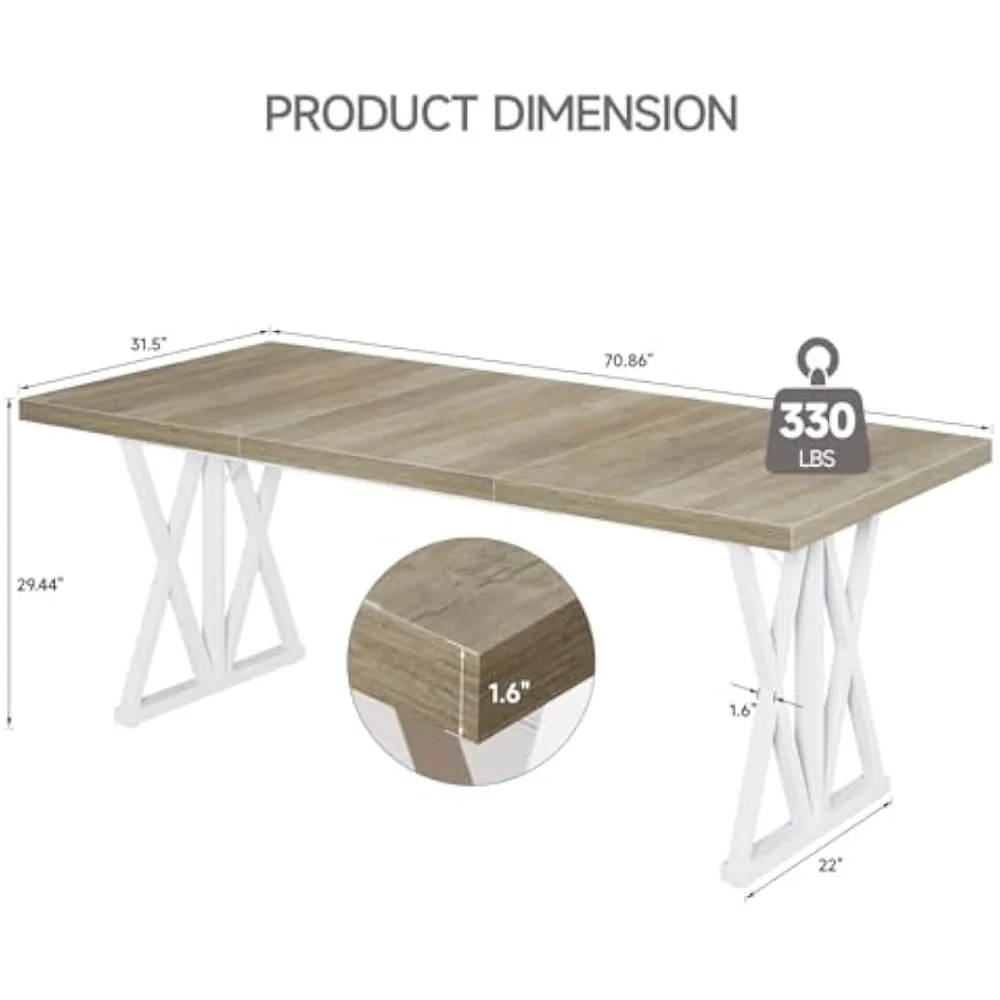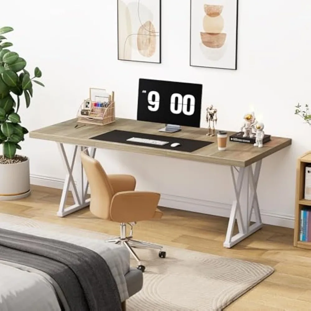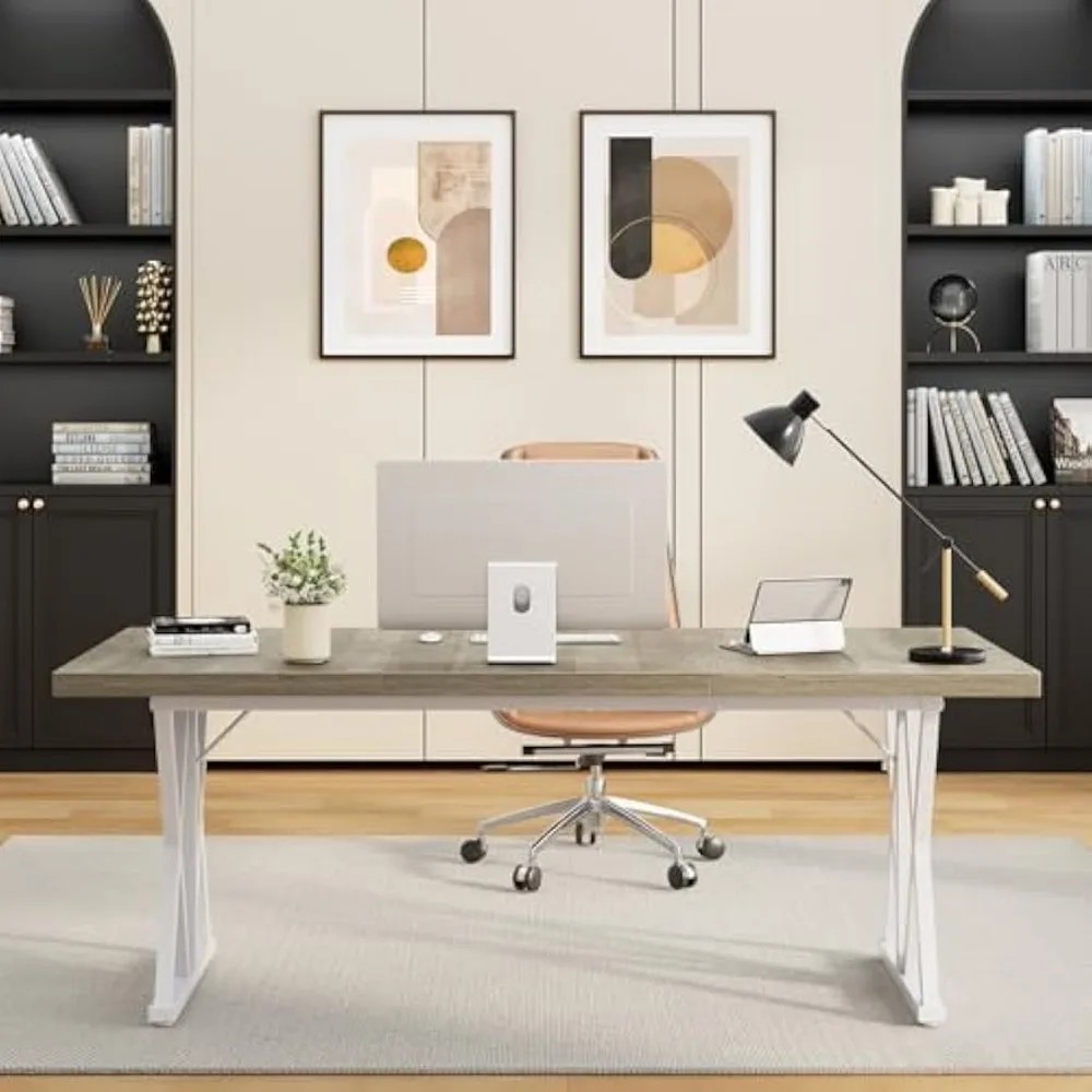 - SPACIOUS WORKSPACE: The home office desk countertop measures 70.86"W x 31.5"D x 29.44"H. The large desktop provides ample space for computers, printers, documents, and other items. The spacious under-desk space allows your legs to breathe freely, making work and life equally comfortable