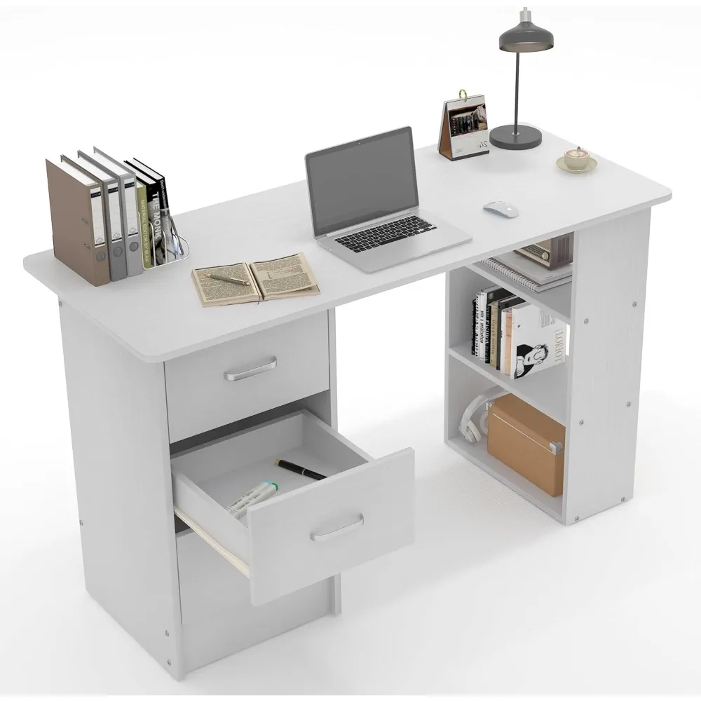 - 【Meeting different storage needs】A desk with drawers provides ample storage space. The storage space of the desk is divided into two areas. On the left side of the desk, there are three drawers of the same size, which can hold books, materials, office supplies, and other items. On the right side of the desk, there are three storage shelves, which can store daily items. The partitioned storage space can greatly improve work efficiency, Make your learning and work space more organized.