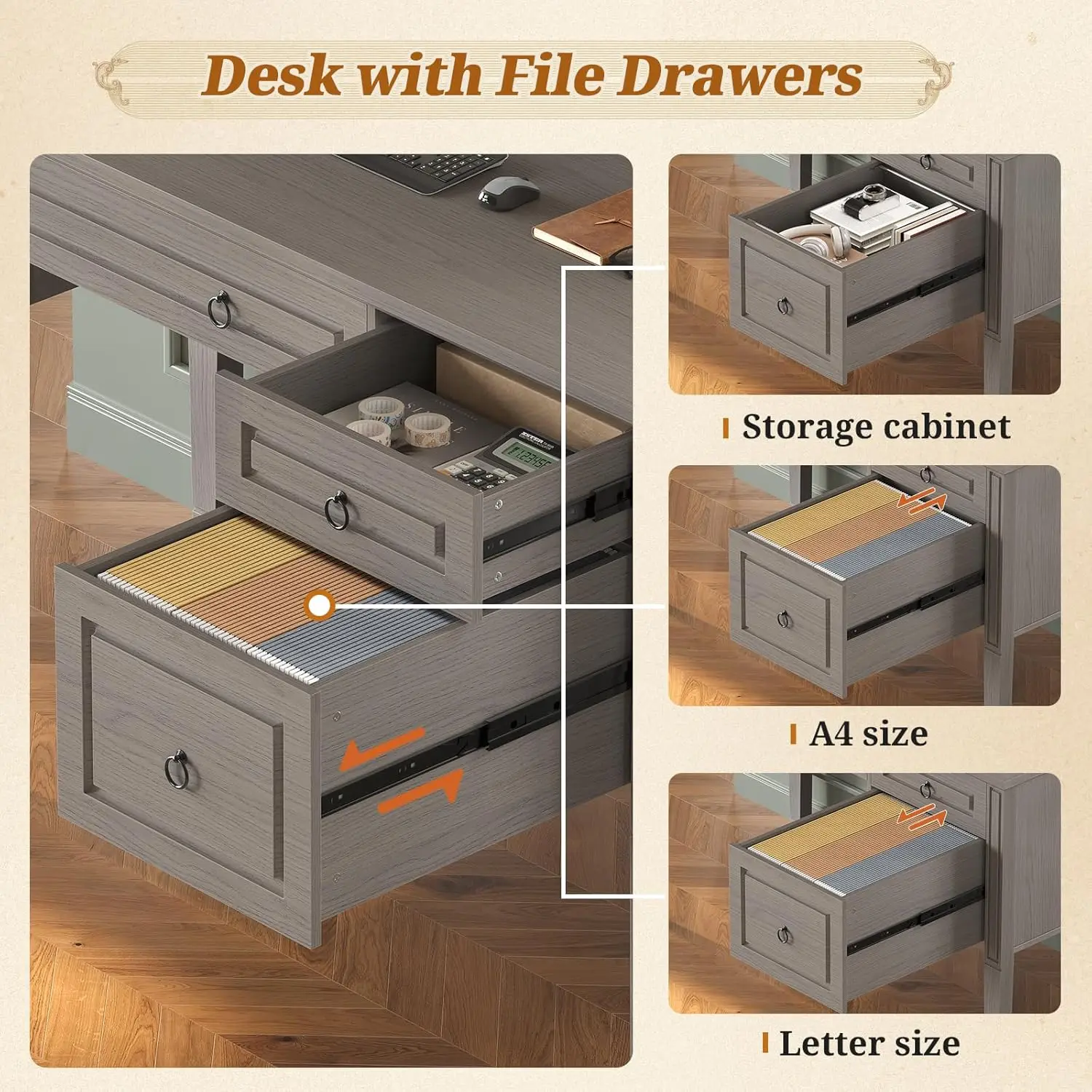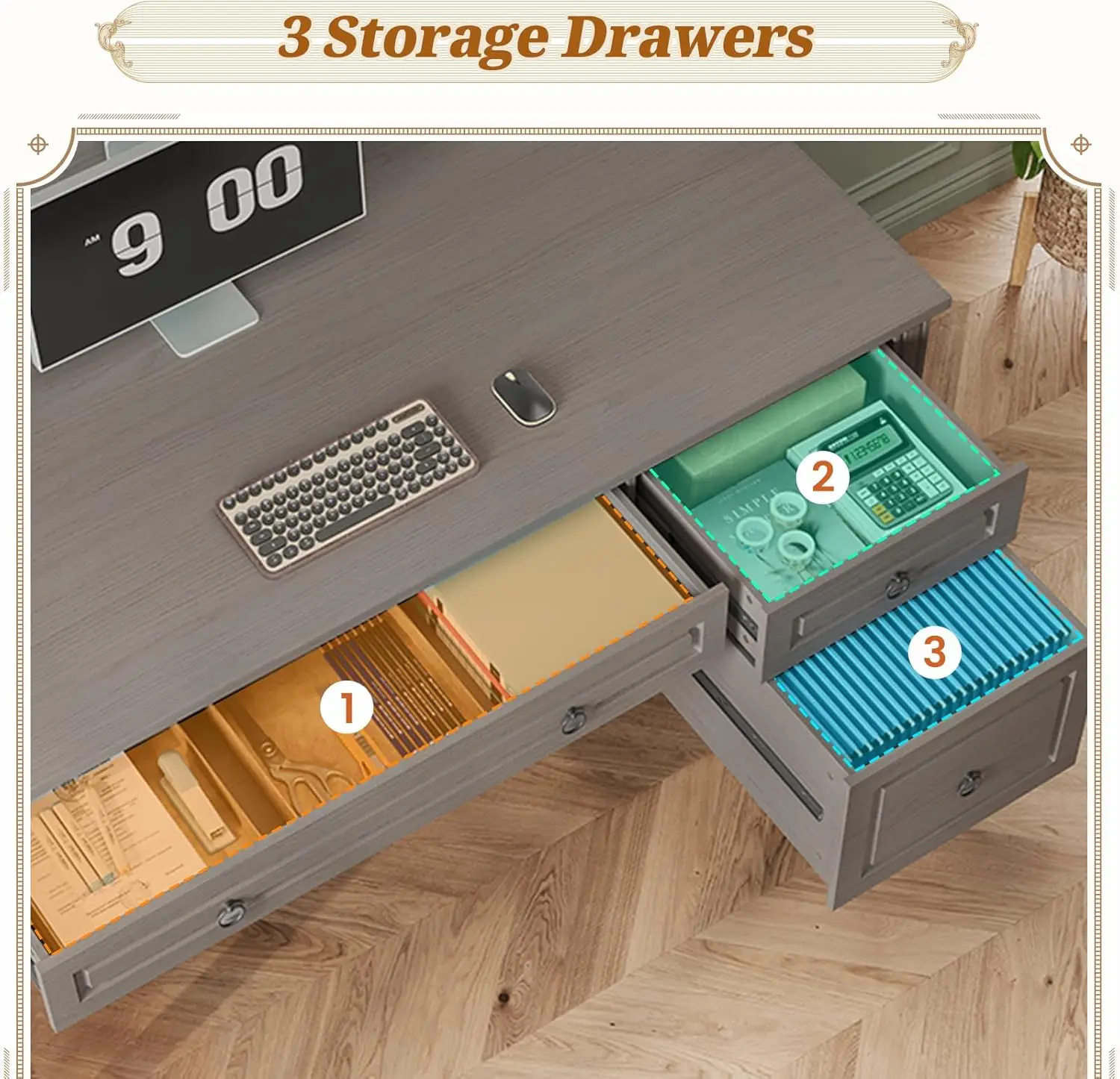 - 【Desk with File Drawer】This executive office desk comes with three storage drawers, including a dedicated file drawer for neatly storing letters and A4 files, making it easy to organize your workspace and provide you with more privacy storage space.