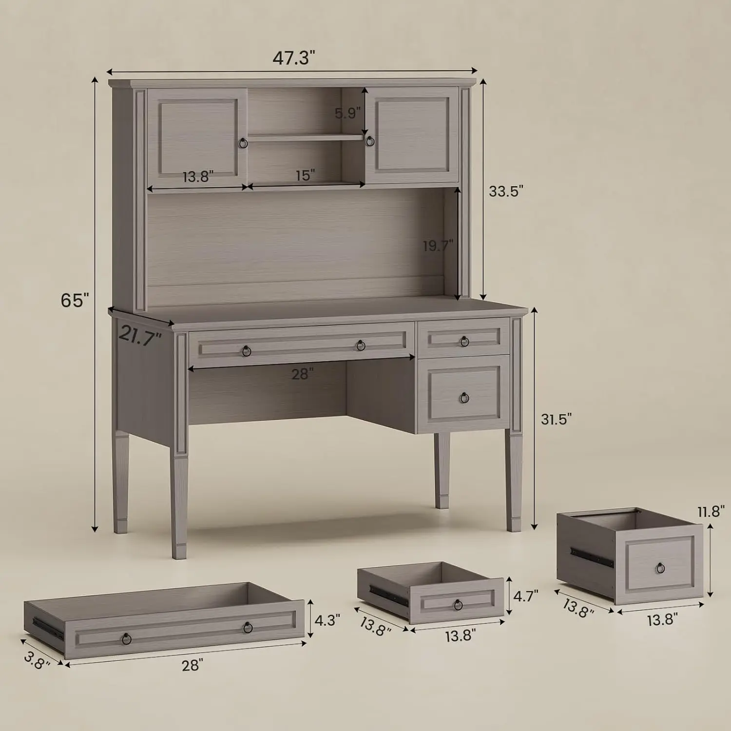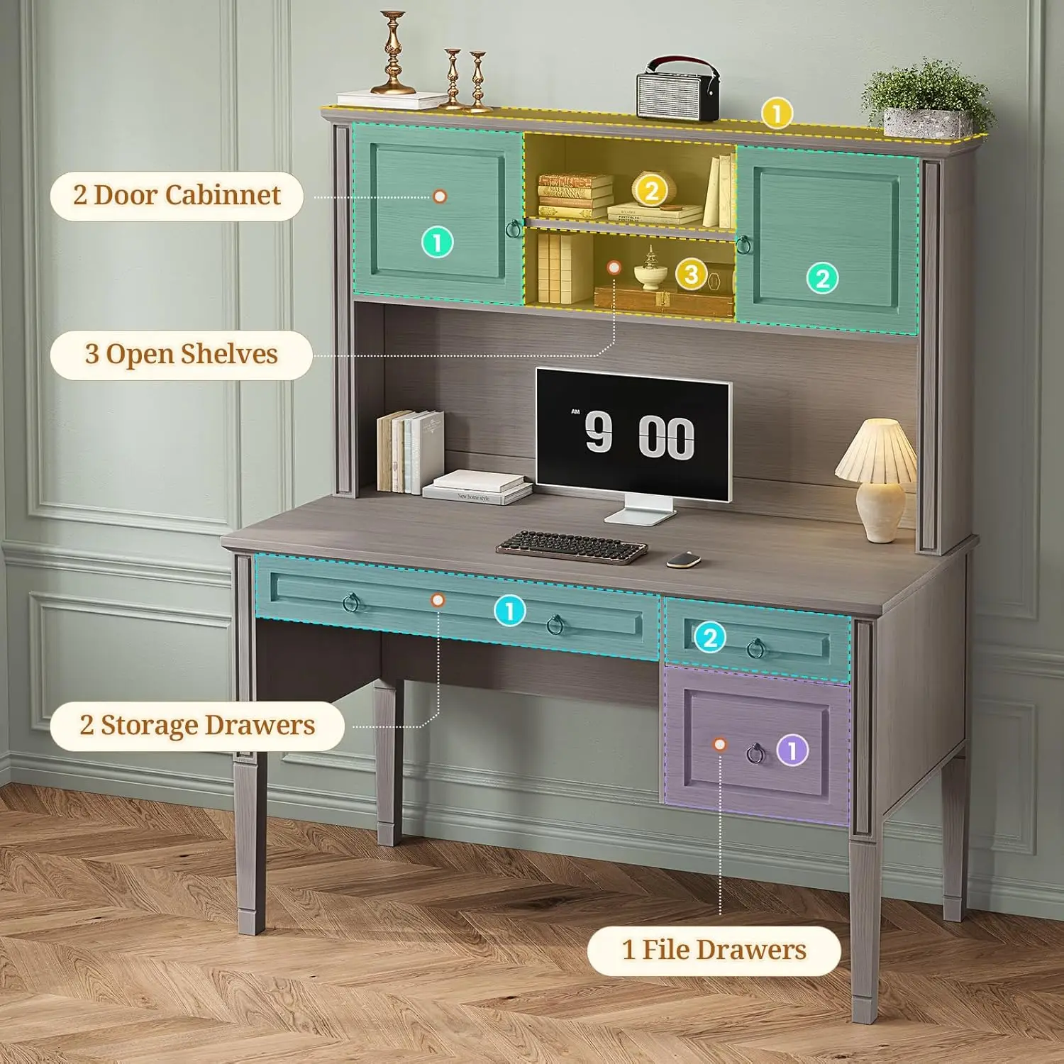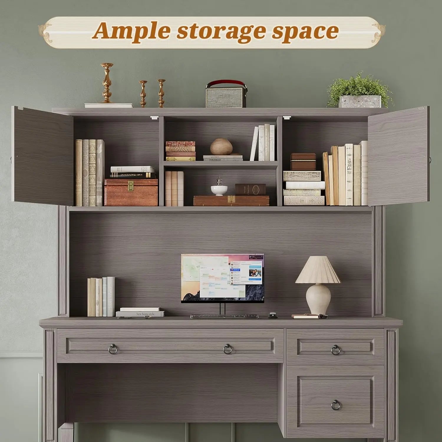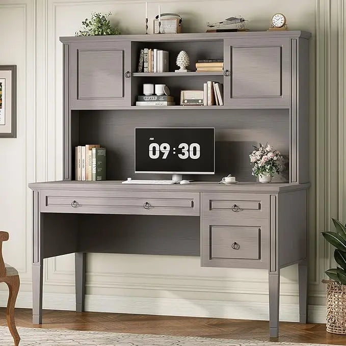 - 【Desk with Hutch】This computer desk has 2 storage cabinets and an open storage layer, which can be used to store your office and daily necessities. You can also place potted plants and other ornaments on the top storage layer to decorate your desk. It has both abundant storage space and beautiful appearance.