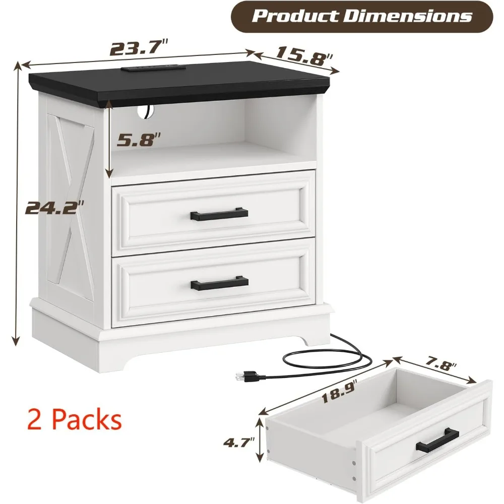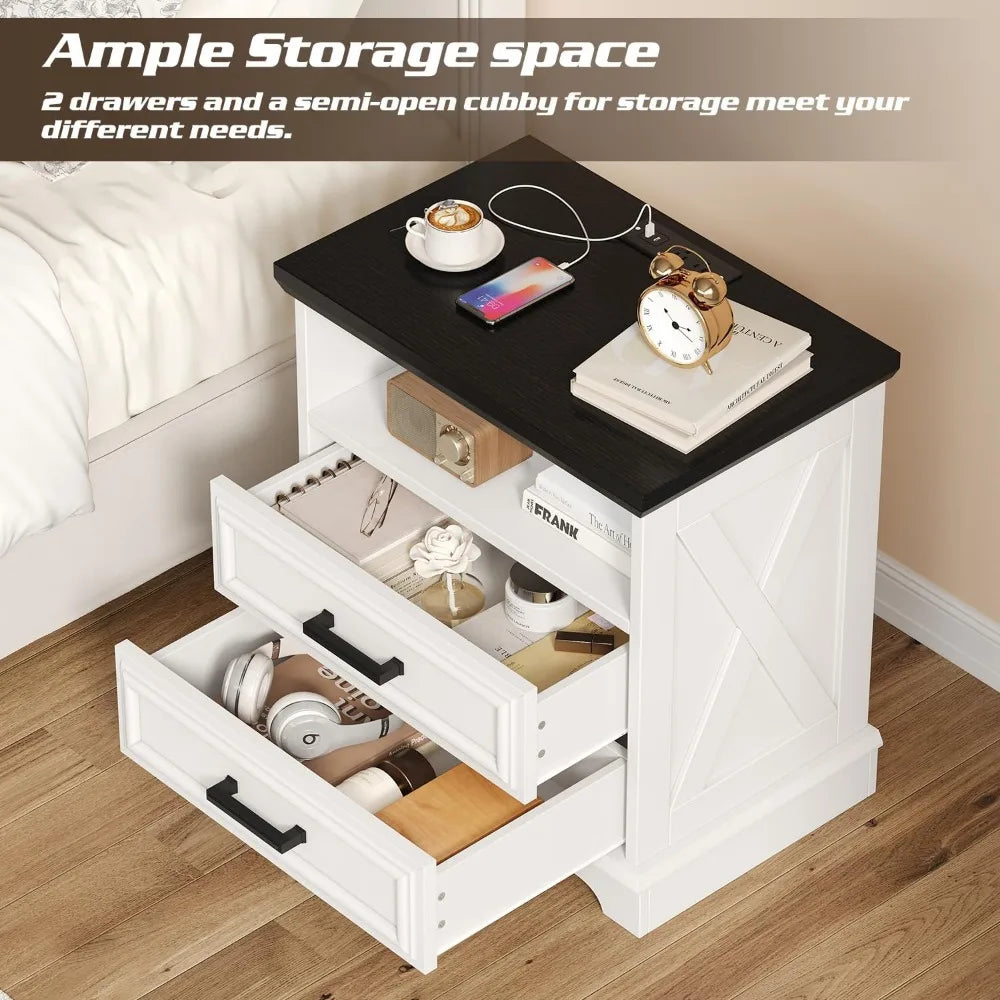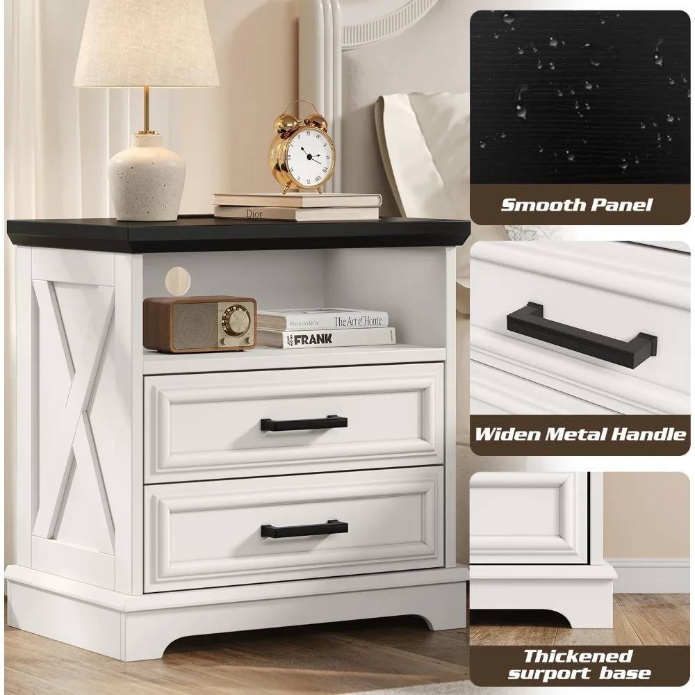 - Unique Two-Tone Embossed Design: Elevate your bedroom décor with our stylish two-tone night stand. It features a sophisticated white embossed pattern on the body paired with a contrasting black embossed top panel. This modern farmhouse design adds a touch of elegant texture and visual interest to any room, seamlessly matching your existing furniture.