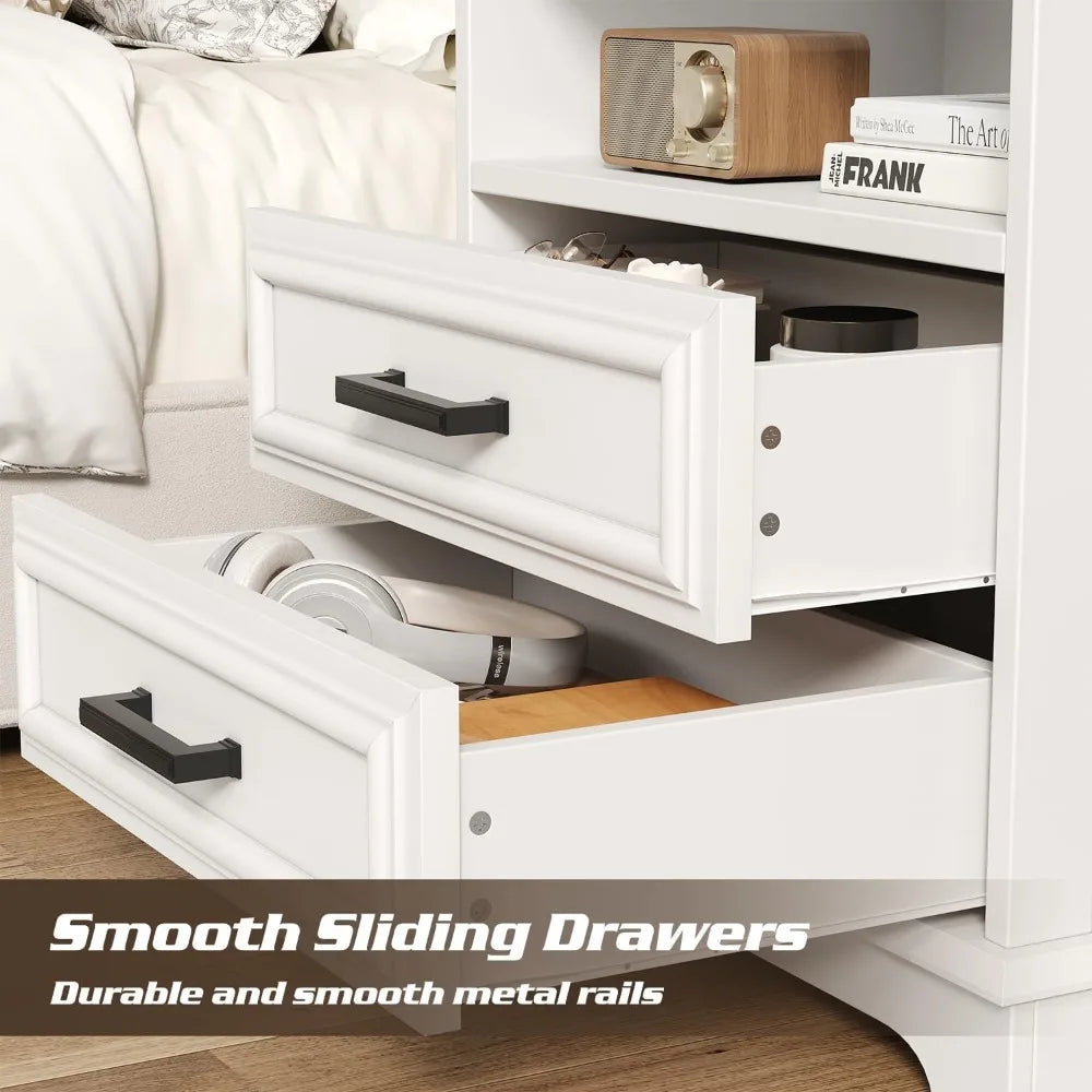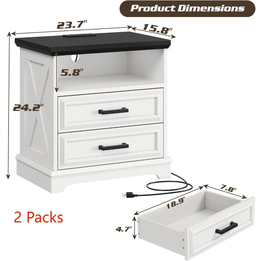 - Built-in USB Charging Station & Outlets: Never run out of power again! This multifunctional bedside table is equipped with a built-in charging station, featuring 2 AC outlets (US Standard 110V) and 2 USB ports. Conveniently charge your phone, tablet, laptop, and other devices all in one place, keeping them within easy reach and eliminating cable clutter.