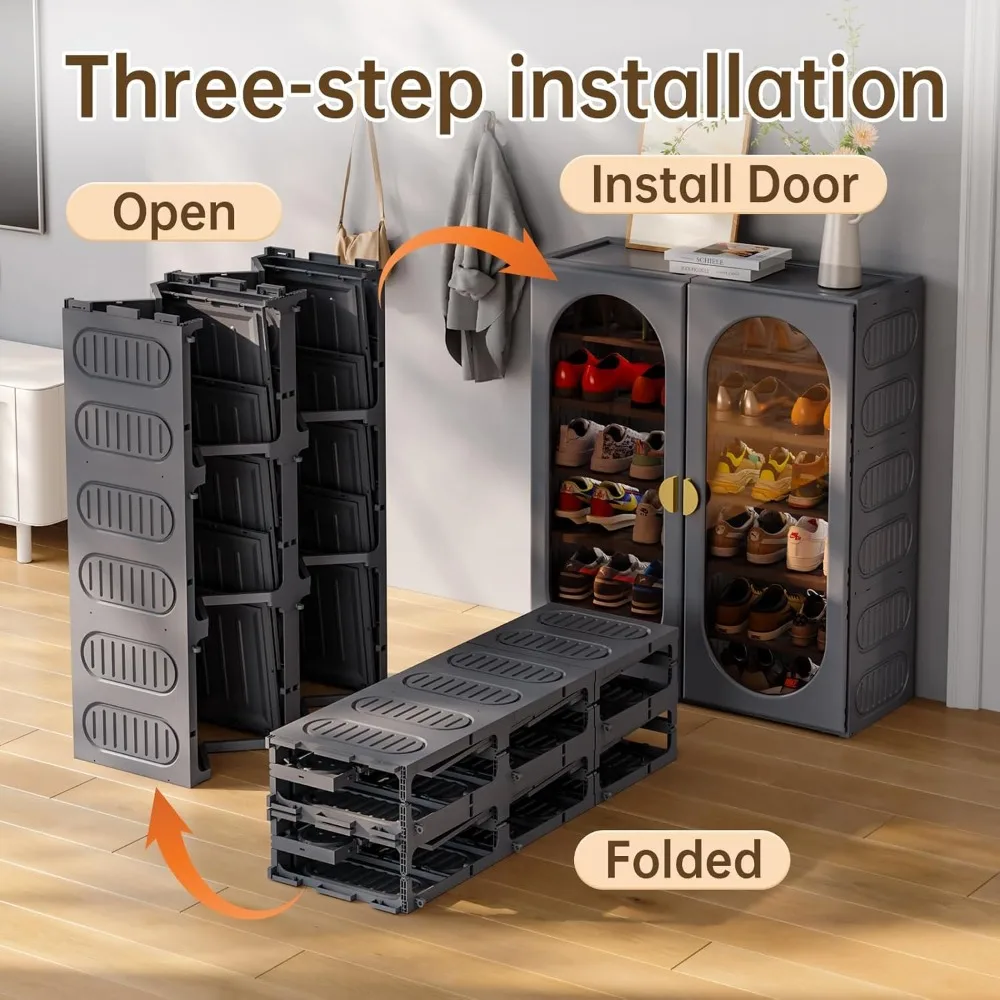 - 【3-Minute Quick Installation 】The shoe cabinet features a one-piece folding design, no assembly tools needed. for quick setup and easy folding.