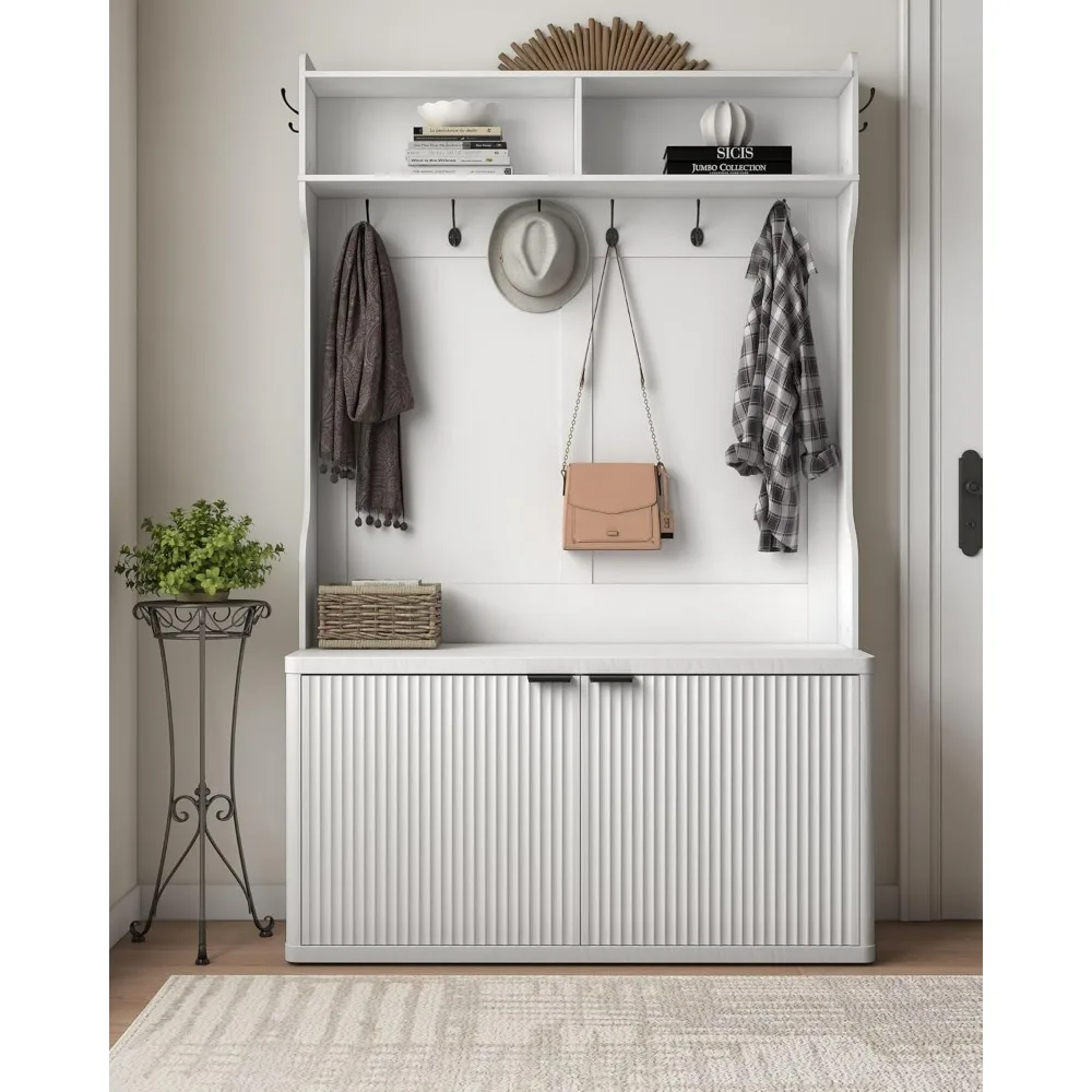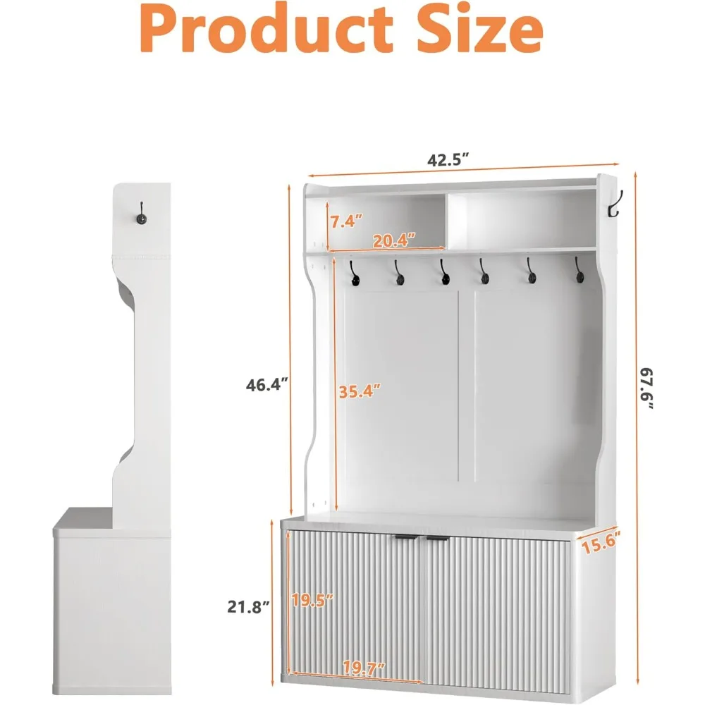 - 【Minimalist & Versatile Aesthetic】Our modern hall tree boasts a minimalist fluted design that elevates your entryway's visual appeal while serving as an eye-catching decorative piece.