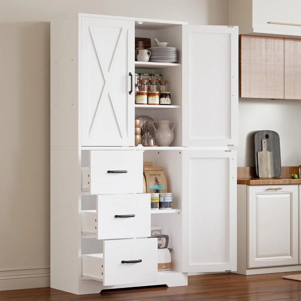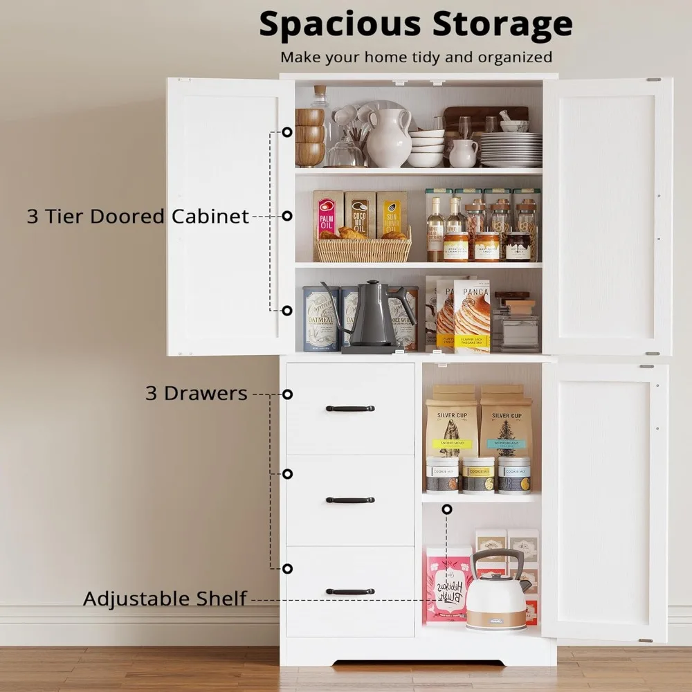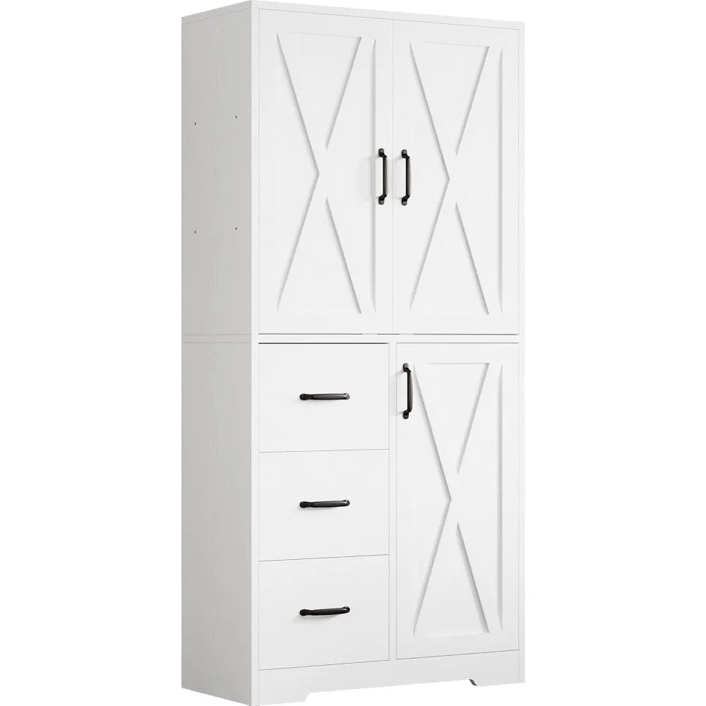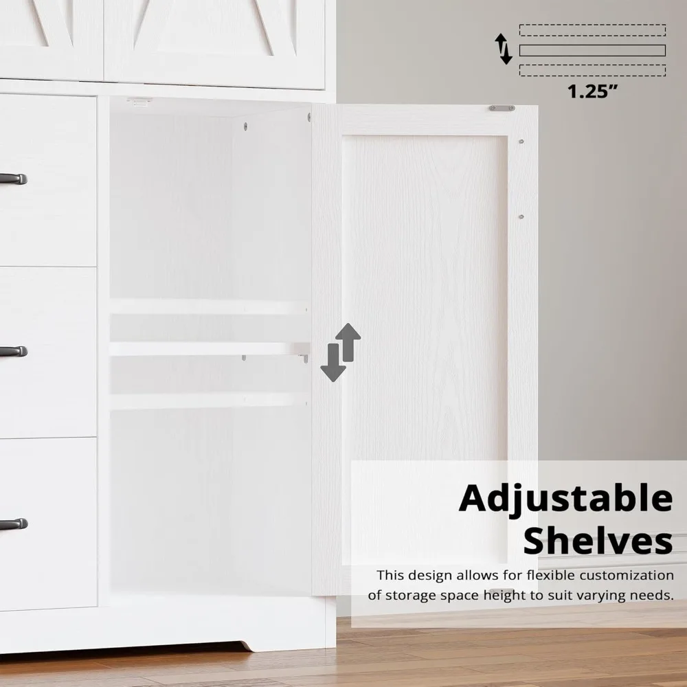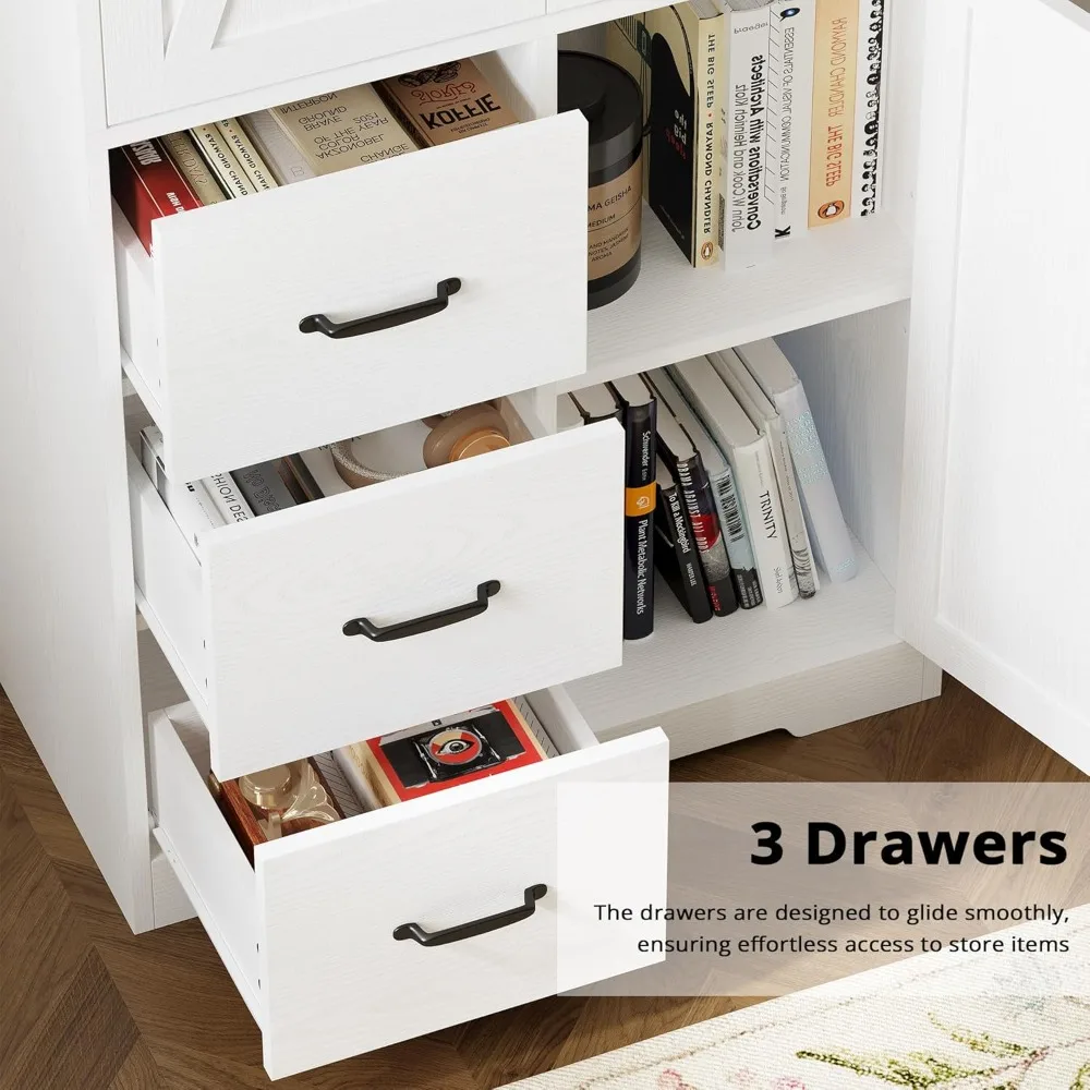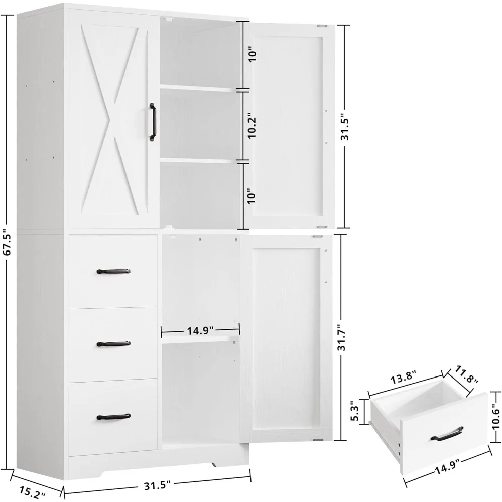 This 5-tier bookcase, with dimensions of 31.5 inches in width, 15.2 inches in depth, and 67.5 inches in height, is equipped with 3 doors and drawers, providing a generous storage space suitable for various items. Ideal for use in kitchens, bedrooms, offices, or studies, it offers both additional storage and a private space. The bookcase features an adjustable shelf, which allows you to modify the height to fit items of different sizes, ensuring a tailored storage solution. Designed with an anti-tilting mechanism and wide support feet at the base, this white bookcase ensures stability and safety. Its stylish design includes a U-shaped handle for an elegant look and smooth door operation, while the magnetic door design ensures quiet and seamless opening and closing. Assembly is made easy with the included detailed instructions and necessary accessories.