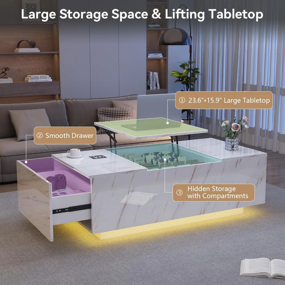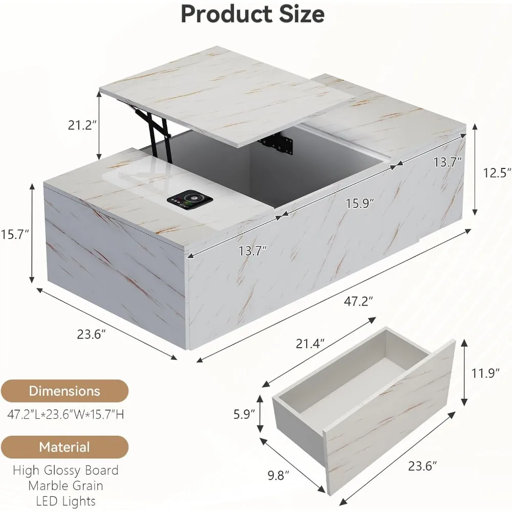 - 【Adjustable Lift-Top Storage Coffee Table】Our oversized coffee table (47.2" x 23.6") combines a high-gloss, waterproof tabletop with multi-functional storage—including a drawer, lift-top hidden compartment, and open shelf. Keeps essentials organized yet within arm’s reach—ideal for modern living rooms.