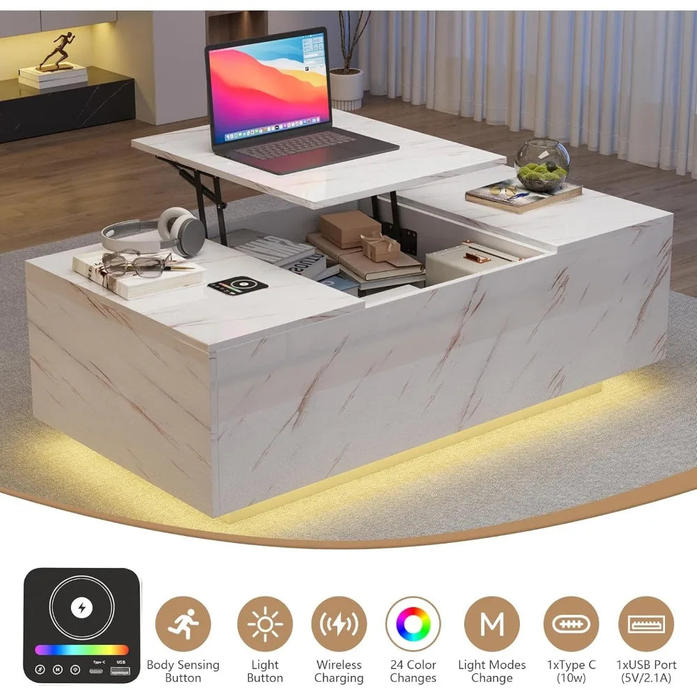 - 【3-in-1 Fast Charging Station】This smart coffee table for the living room features 15W wireless fast charging, dual USB-C/USB ports, and powers laptops, headphones, game consoles, and other devices—no cable clutter.