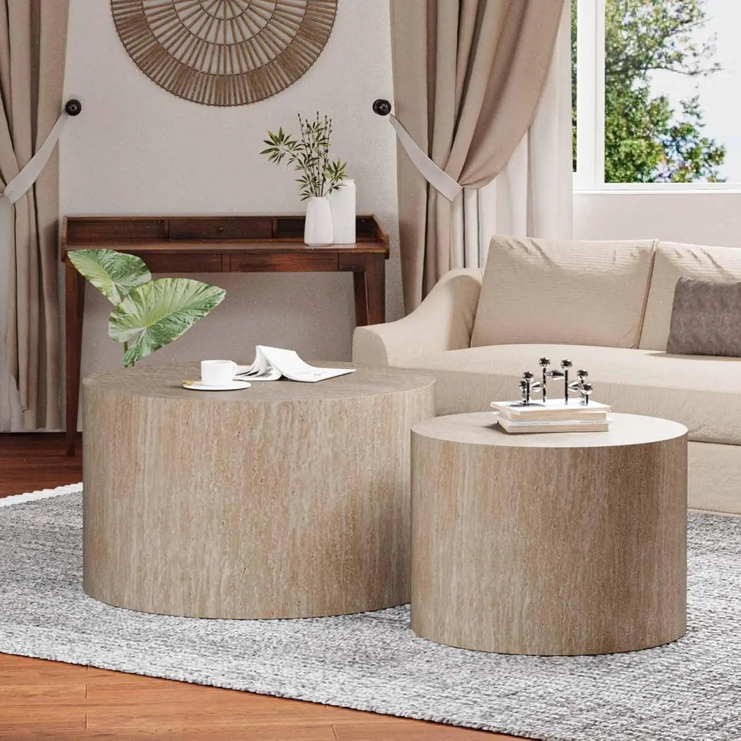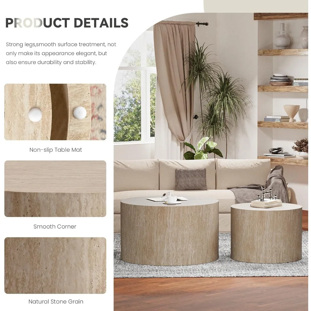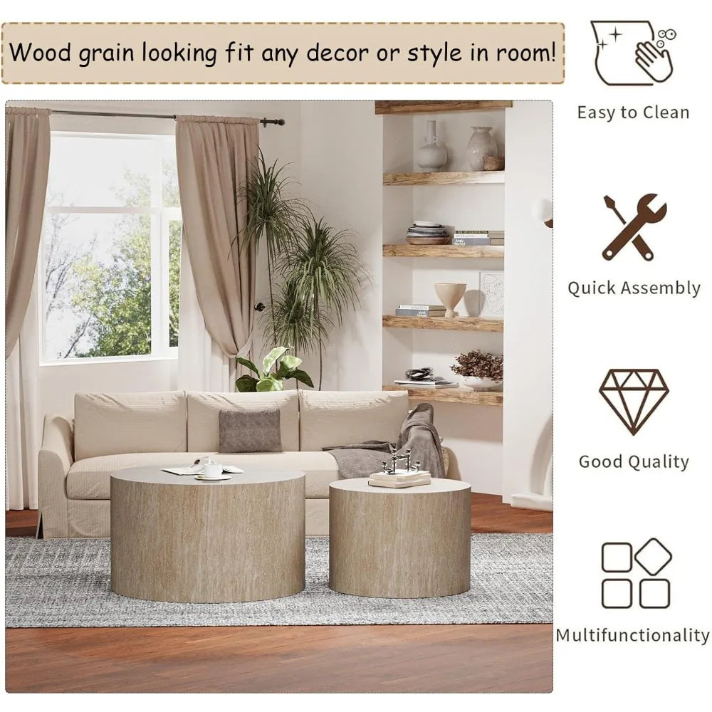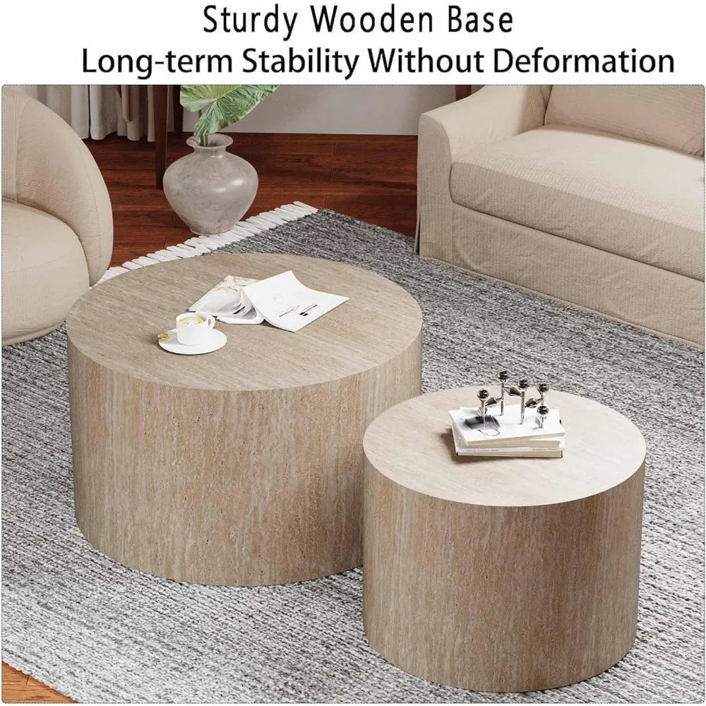 - Space-saving: Unlike other thin-legged round coffee tables, this coffee table can securely hold everyday items due to its columnar appearance. The large coffee table adopts a hollow design, which allows the small coffee table to be placed inside when not needed, saving space