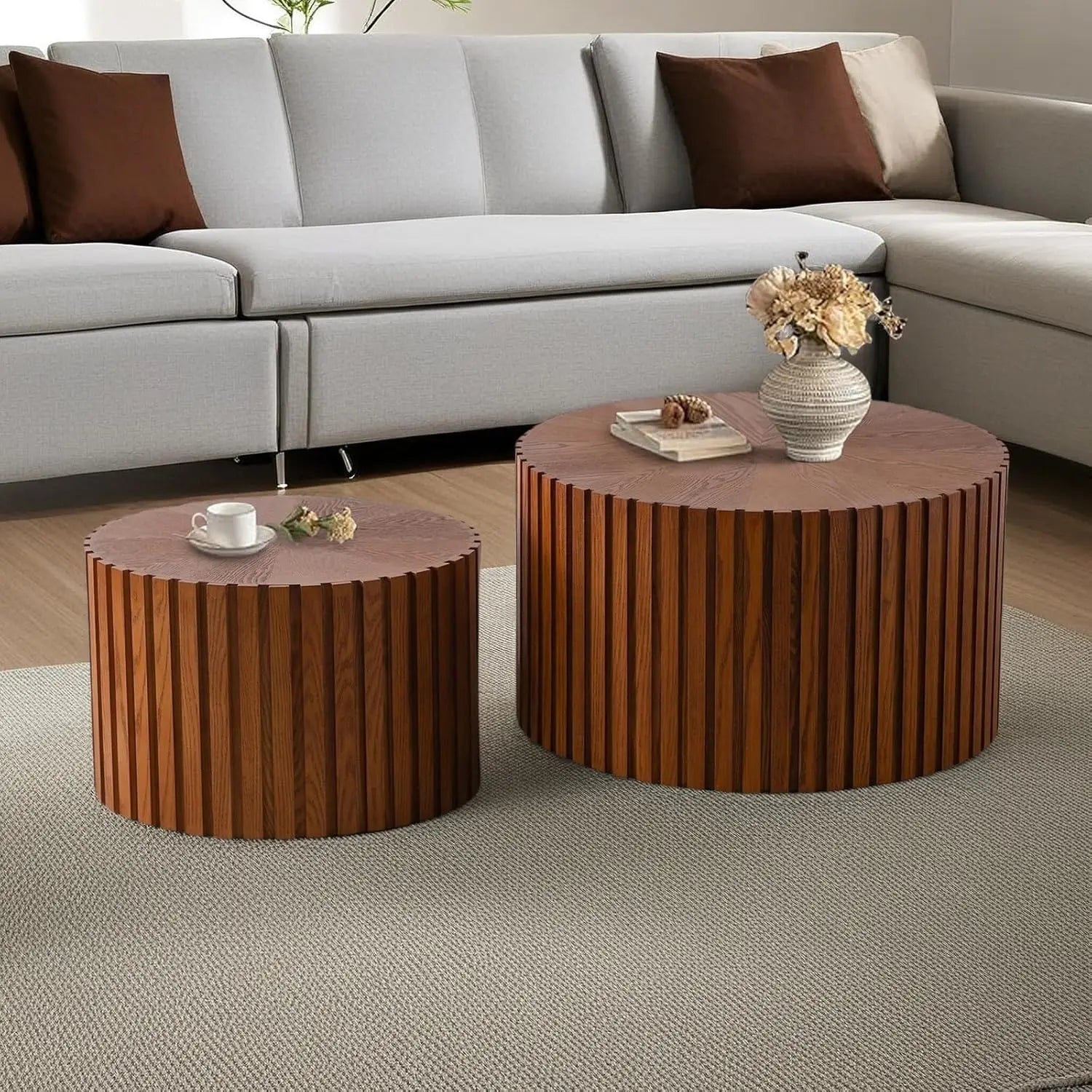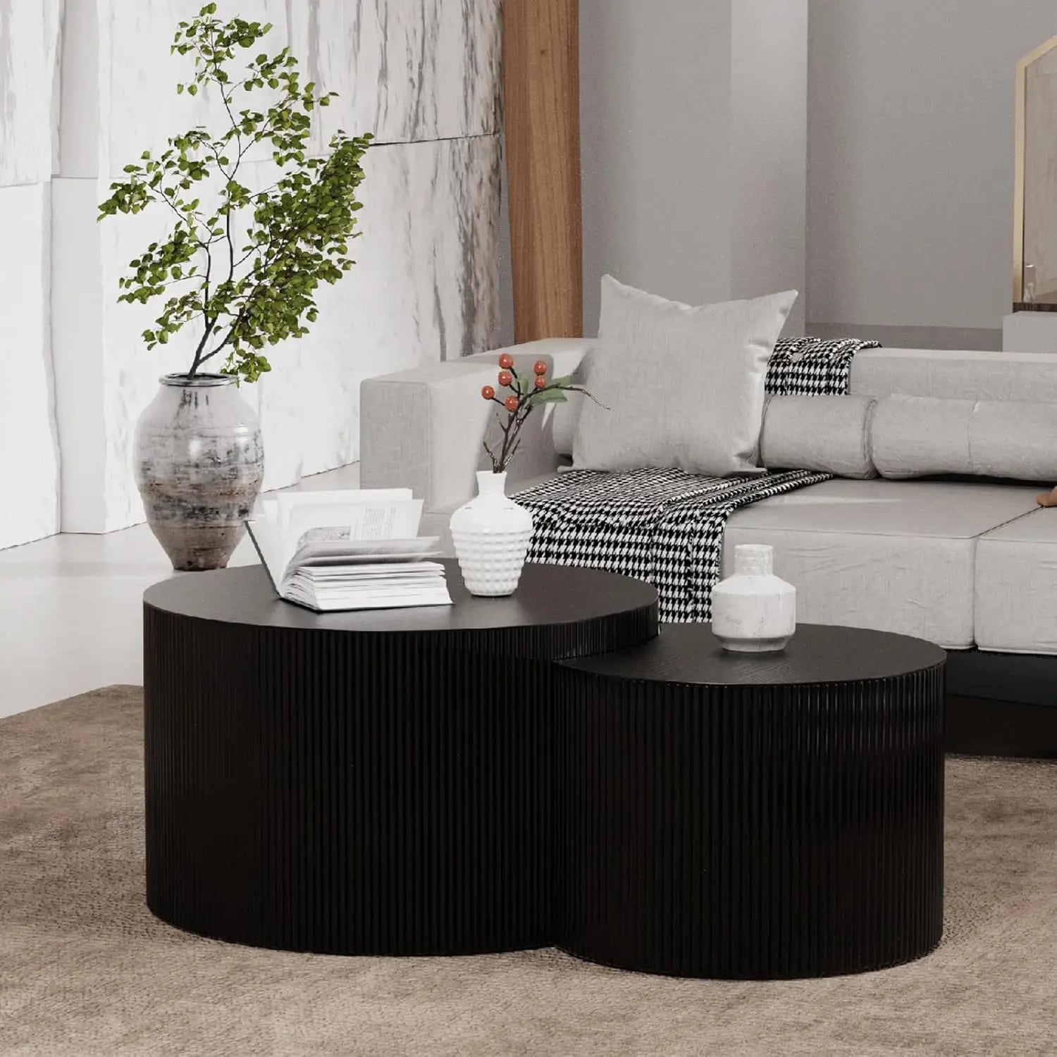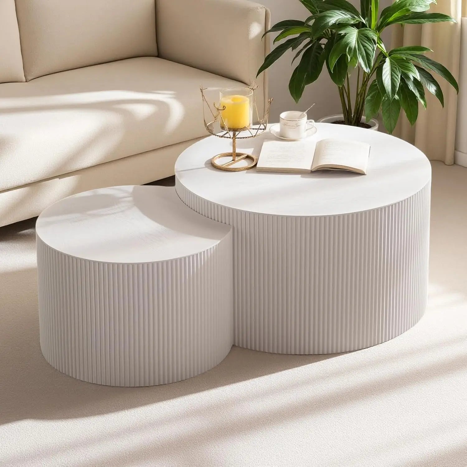 - Space-saving: Unlike other thin-legged round coffee tables, this coffee table can securely hold everyday items due to its columnar appearance. The large coffee table adopts a hollow design, which allows the small coffee table to be placed inside when not needed, saving space