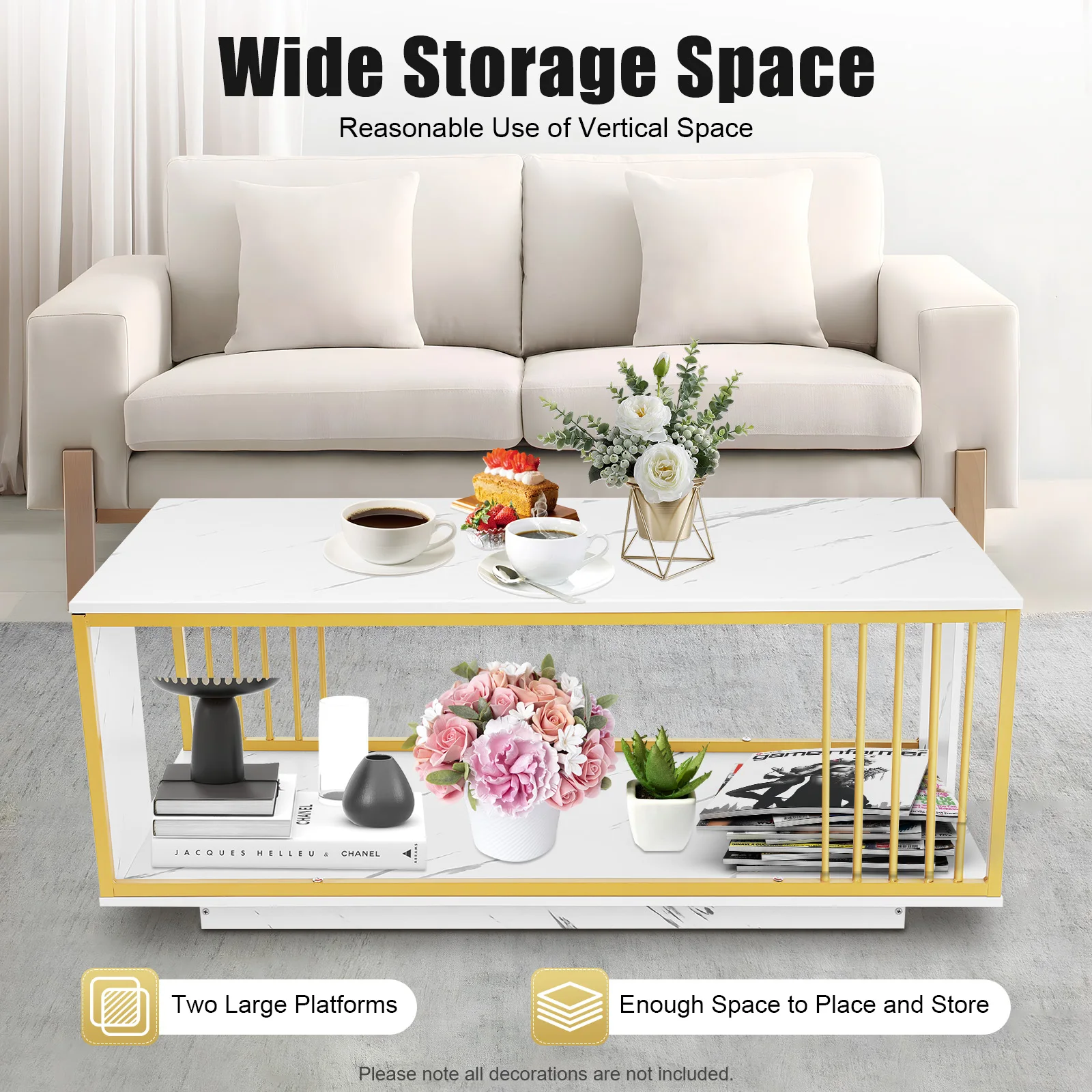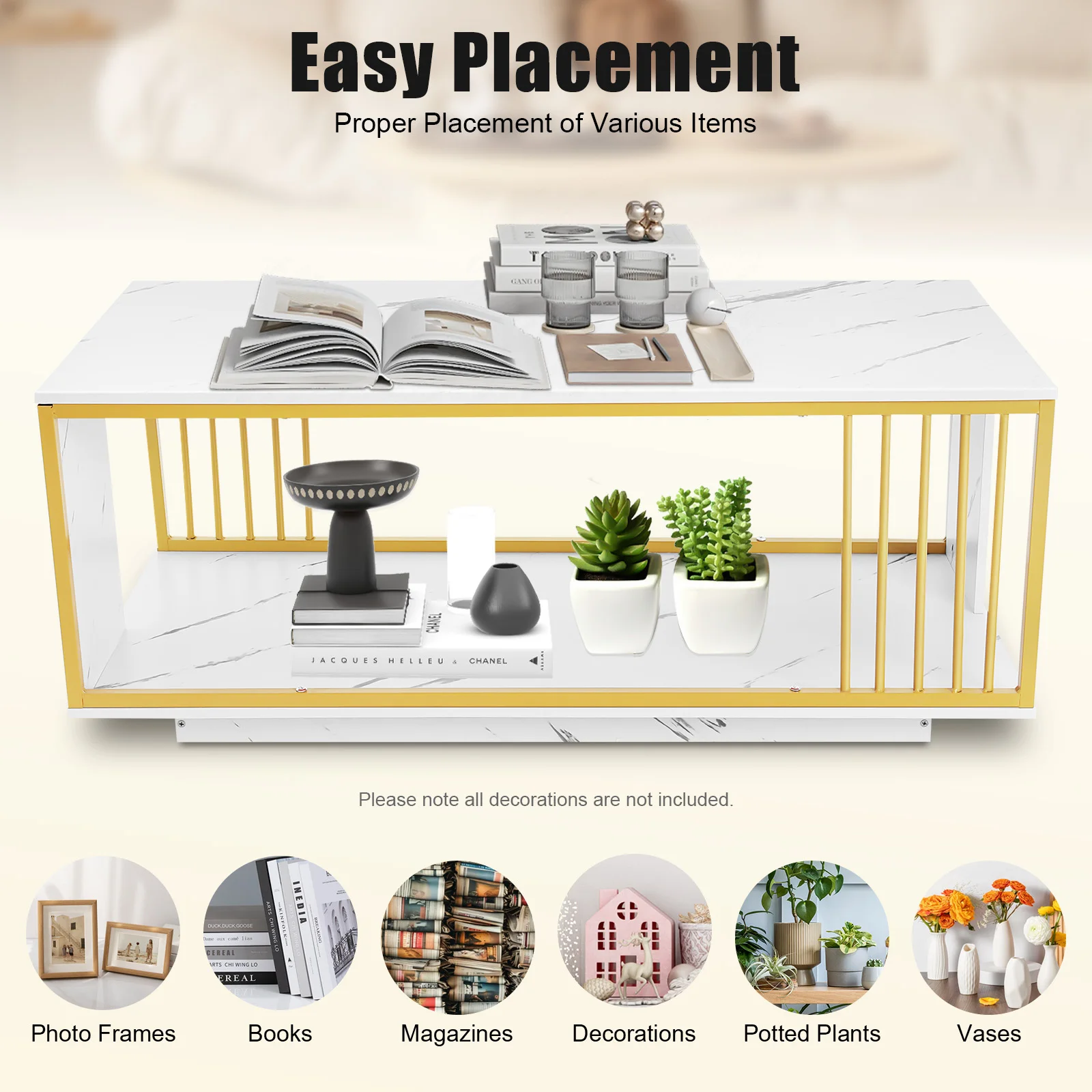 Modern Design: Featuring a golden geometric frame and white marble pattern surface, it is suitable for most modern homes and can decorate the room.