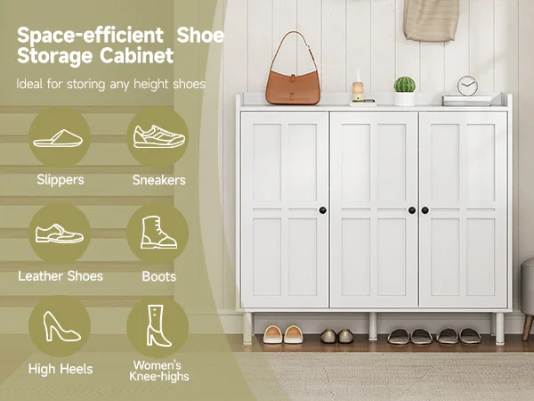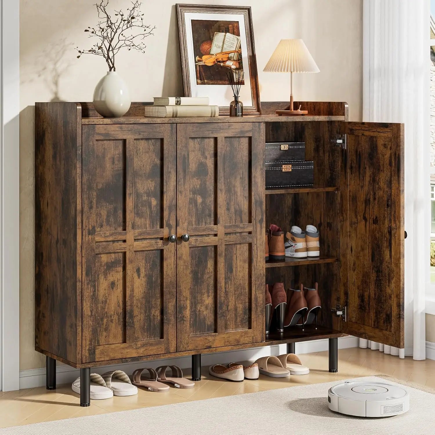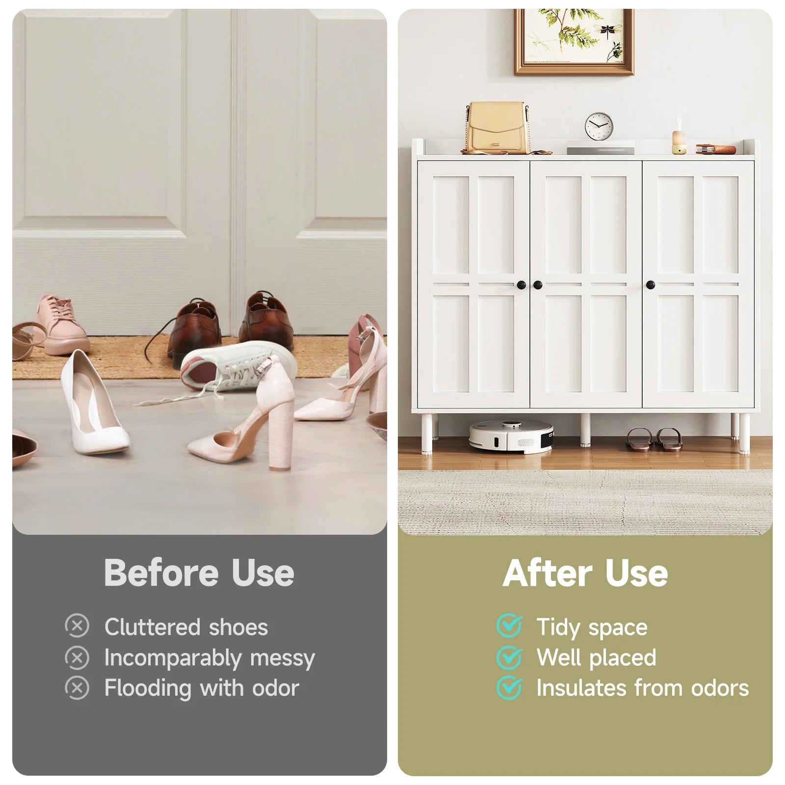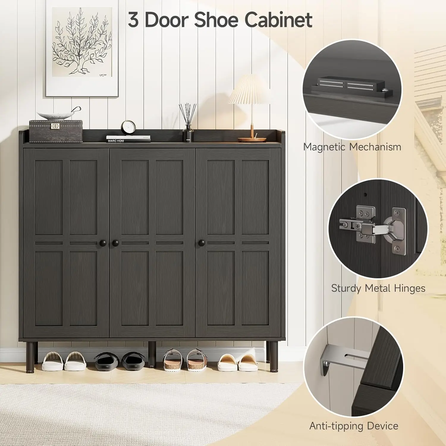 Shoe Cabinet with 3 Doors, 30 pairs shoe Storage Cabinet , 40 inch Tall Fammhouse Shoe with Adjustable Shelves Rack Shoe Organizer Cabinet for Entpway Living Room