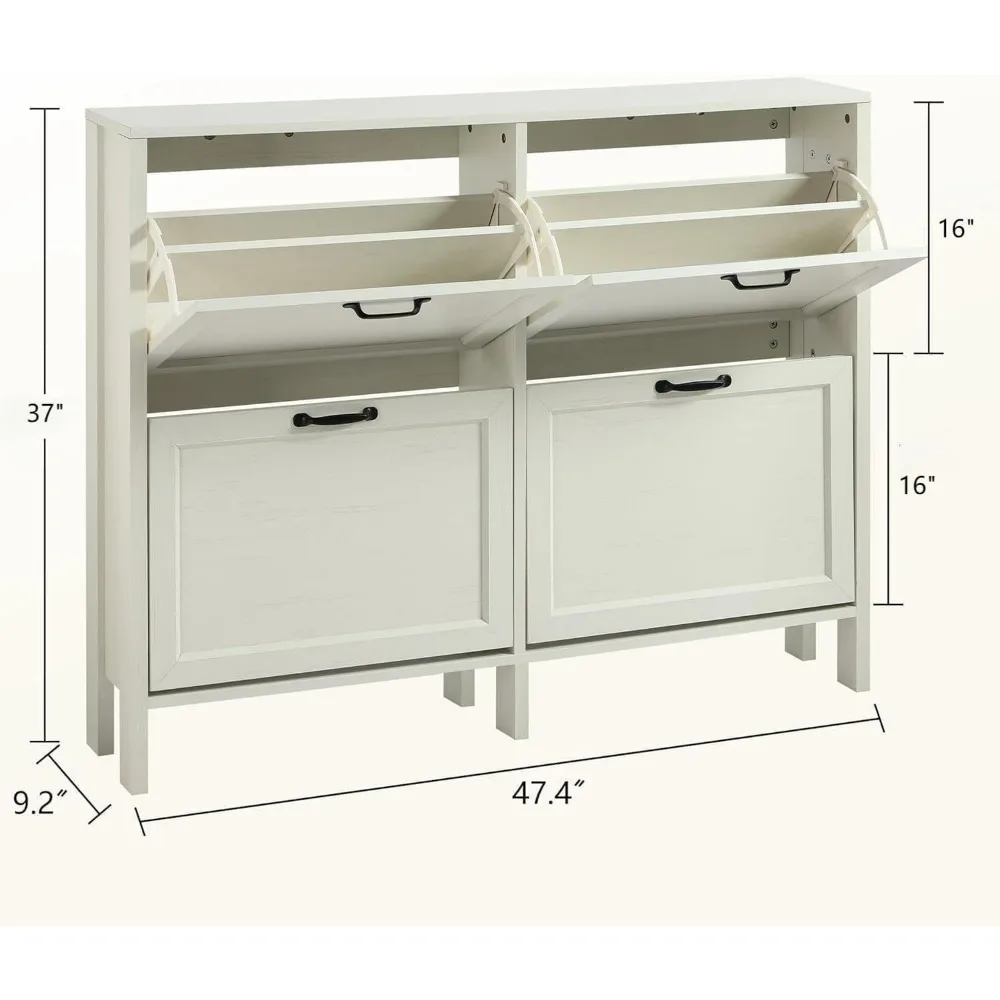 - Flip Drawers Shoe Cabinet: The Freestanding shoe storage cabinet has 4 flip doors. Each flip drawer equips with an inner adjustable shelf to fit the height of your shoes.This hidden shoe cabinet organizer enhances the neatness of your home