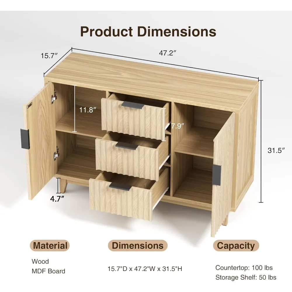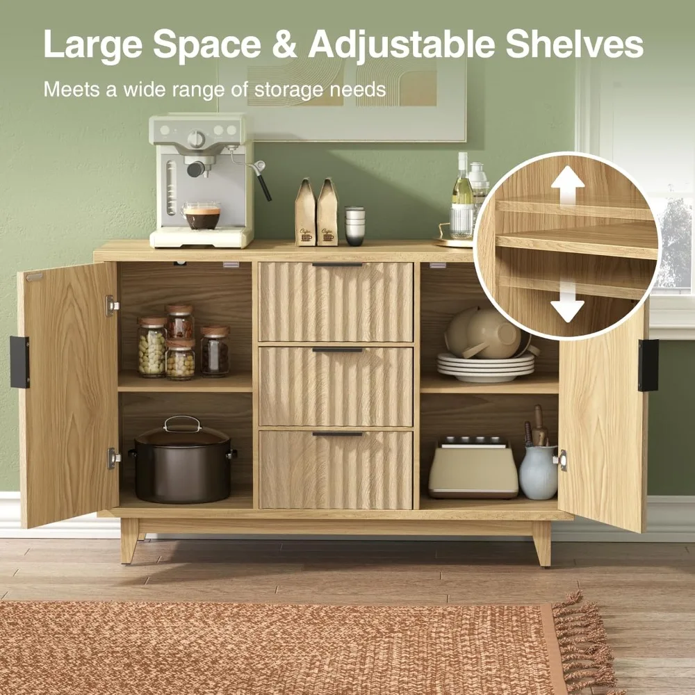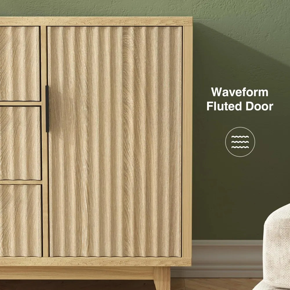 - 【Fluted & Elegant Design】This storage cabinet features a unique waveform fluted panel, brings visual interest while reflecting texture and elegance. Pair it with black metal handles for a premium look. The minimalist and distinctive buffet cabinet is a great decoration for any room in your home. It's a good choice whether you are looking for a modern style or a natural traditional style!