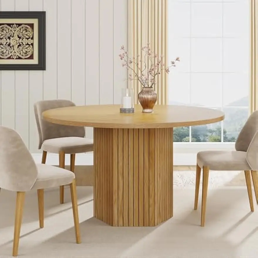 - Classic Round Design for Comfortable Dining: The Wood Dining Table features a 47-inch round surface, providing adequate space for up to four people to dine. With this comfortable seating arrangement, everyone at the table can engage in conversation, making meals a more convivial experience. Its classic round design and light brown finish make it an attractive centerpiece in your dining room or kitchen